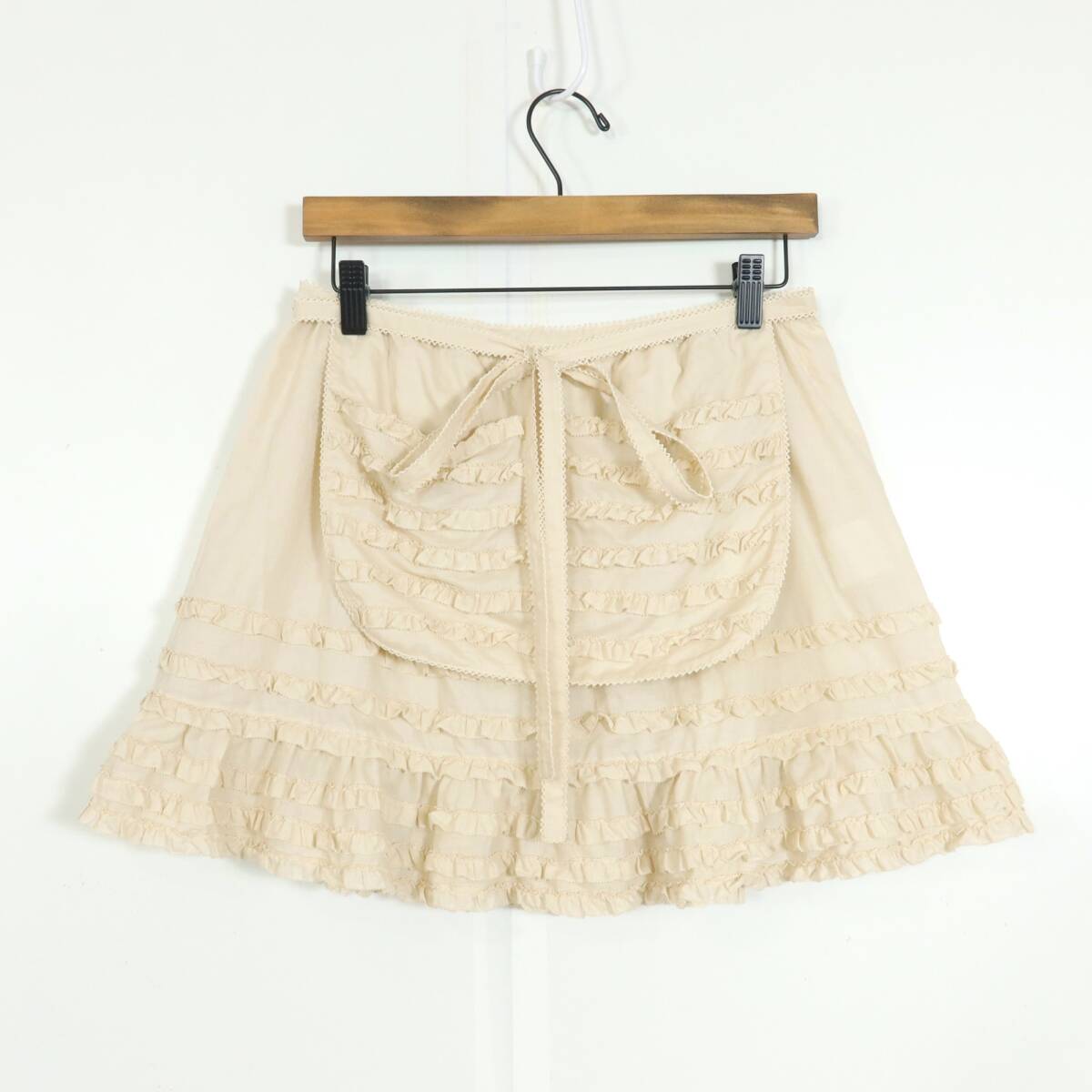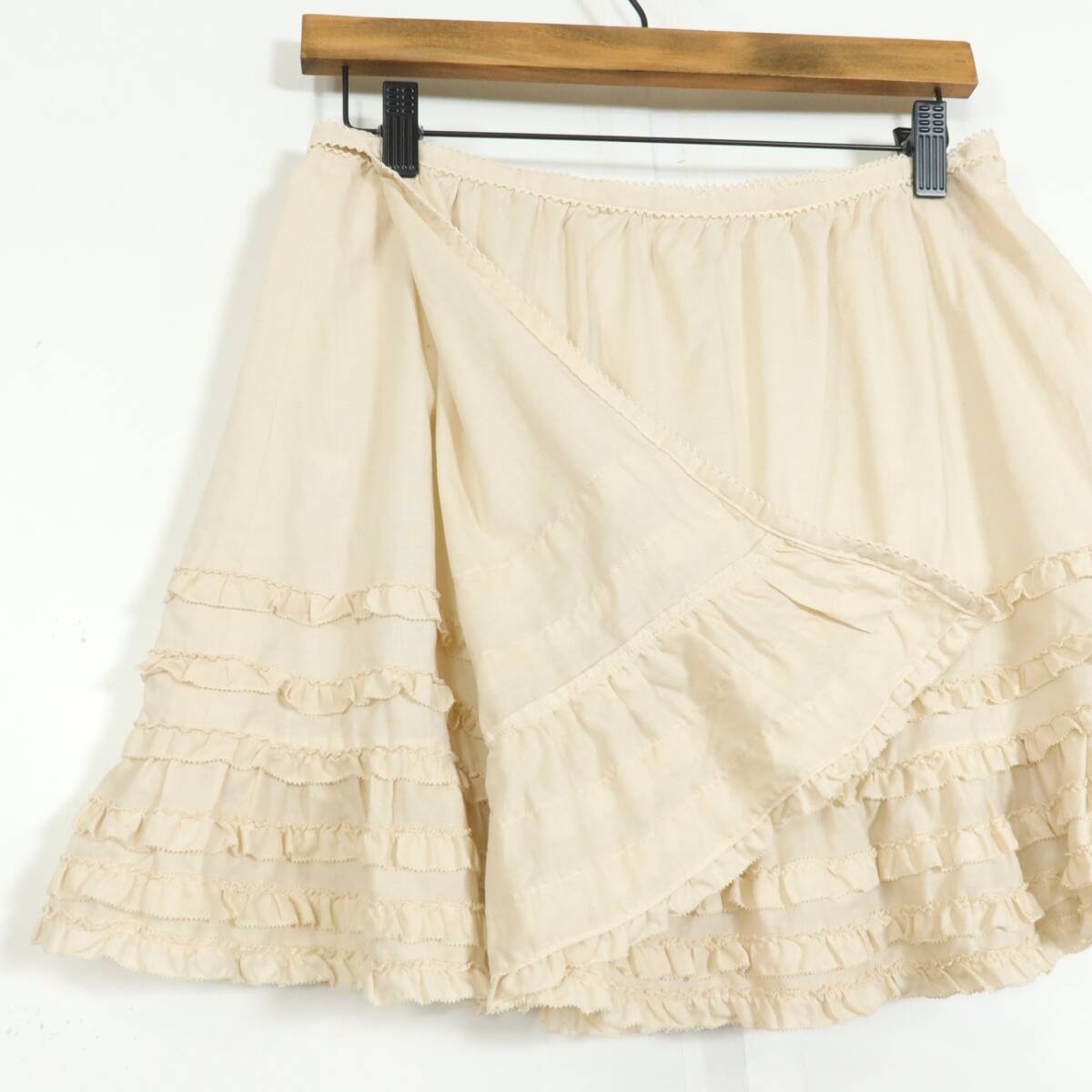 【美品】ピンクハウス★フリルいっぱいタブリエ 綿ローン ベージュ系 ラップデザイン ピコレース♪z14229