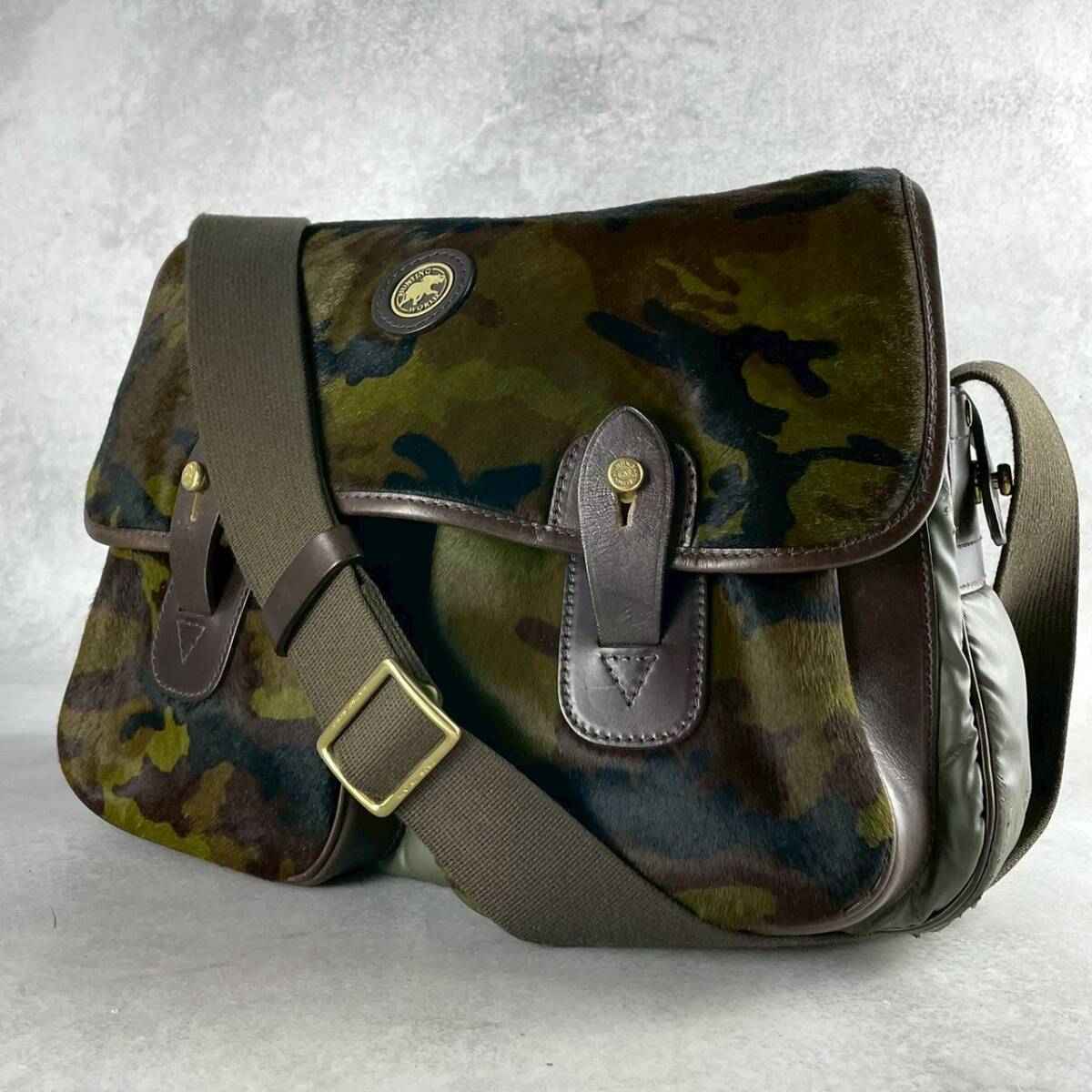 超希少/LEON別注/限定100個生産◎ HUNTING WORLD キャリーオール ハラコ 迷彩 カモフラ バチュークロス メッセンジャー ショルダーバッグ