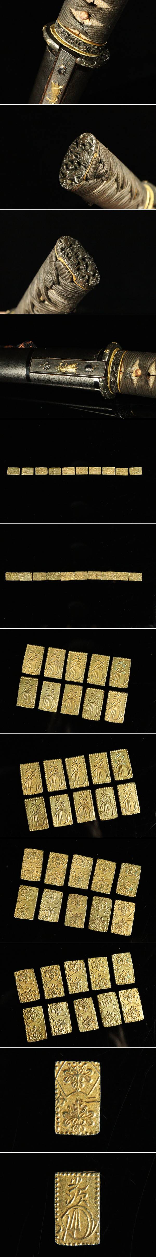 【ASAHI】希少 仕込み金貨隠し拵え 竹ツナギの中に仕込み 金貨付 脇差外装 虫尽くし金具 赤銅鍔 56.2cm 極上品[71118qet]