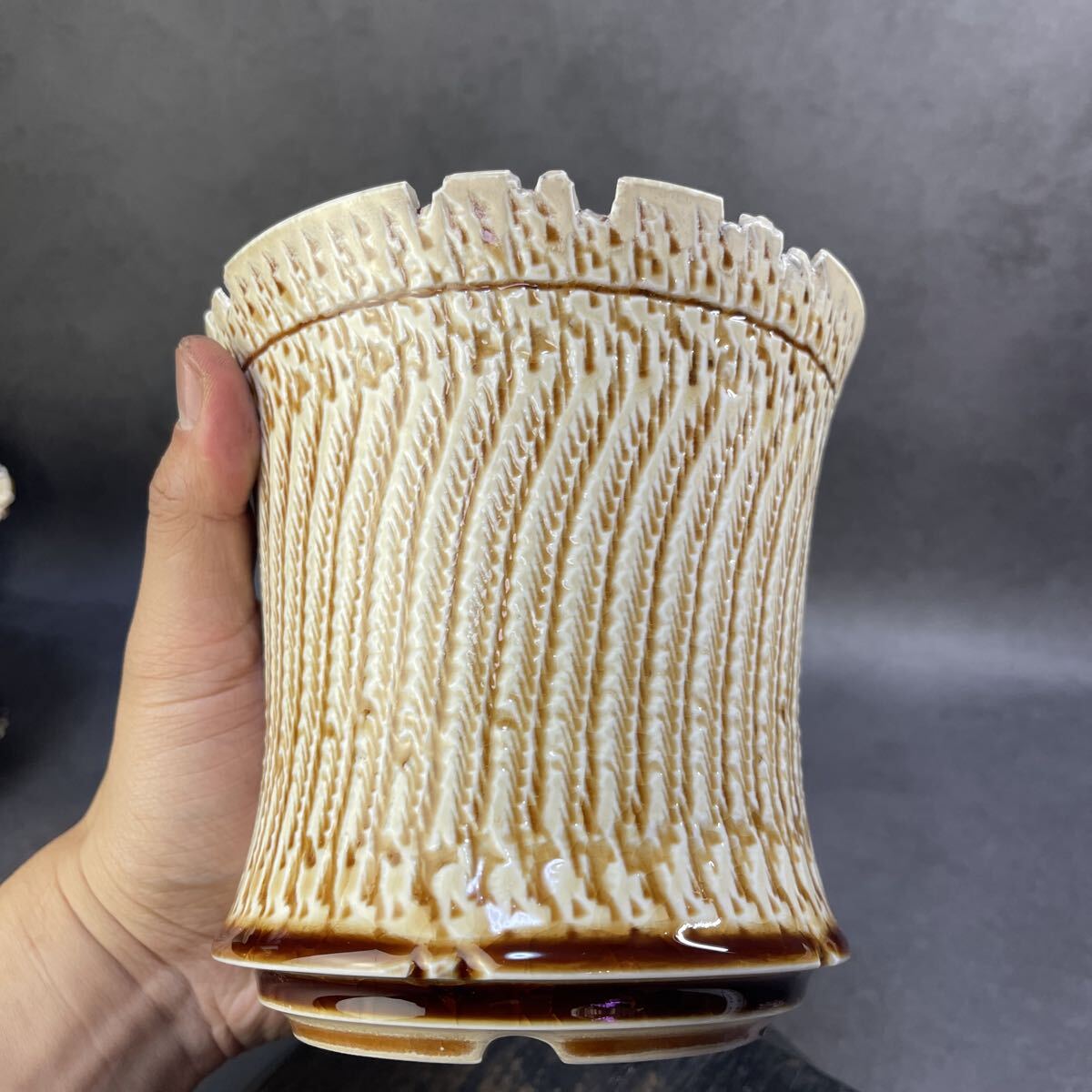 り756 象牙裂紋釉 XL HAND Made 植木鉢 陶器検(アガベ パキプス 姫巌竜 帝釈天 黒火焔 factory SRL カタチ製作所 グラキリス 塊根植物