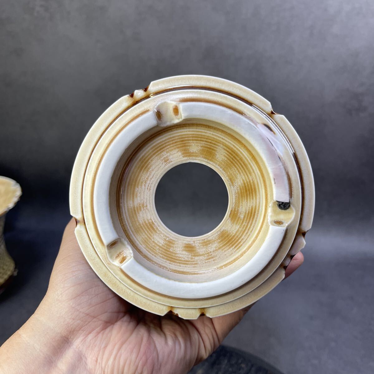深部には琥珀釉が流れ込み、古代遺跡の化石を思わせる質感。