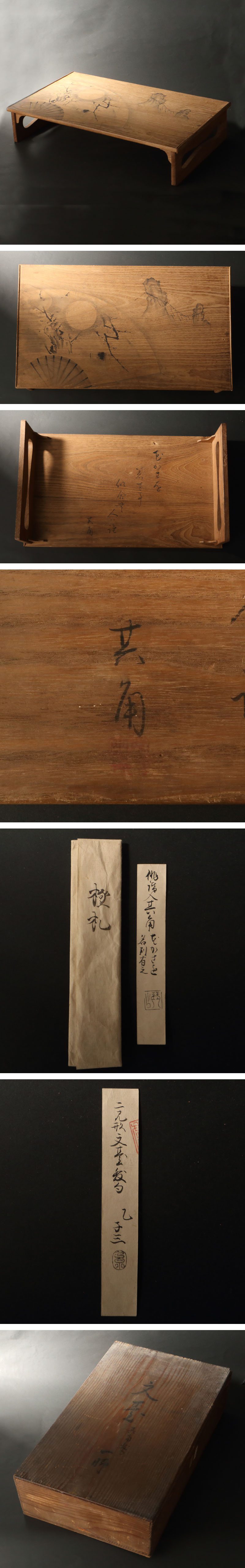 委託HK◇其角 二見形文台 古筆了泉極札(家具 木工 文机 机 書 書籍 硯箱 和室 茶室 松尾芭蕉 墨画 墨書 古物 骨董 二見浦 夫婦岩)