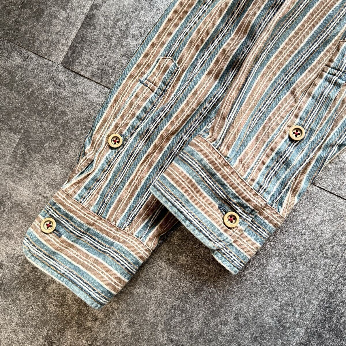 希少!!!美品/XLサイズ◎45R マルチストライプ 長袖シャツ 羽織り フォーティーファイブアール Rロゴ刺繍 コットン メンズ 日本製 5