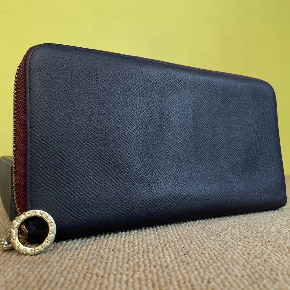 一円 美品 BVLGARI ブルガリ 長財布 ラウンドファスナー ビーゼロ ロングウォレット ブラック サークルロゴ ビーゼロワン ネイビー