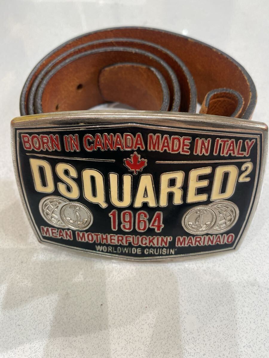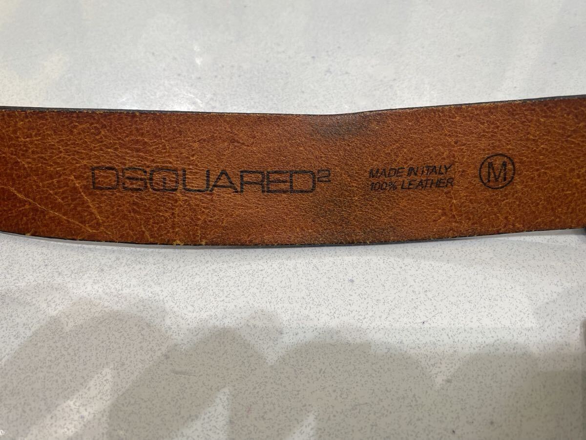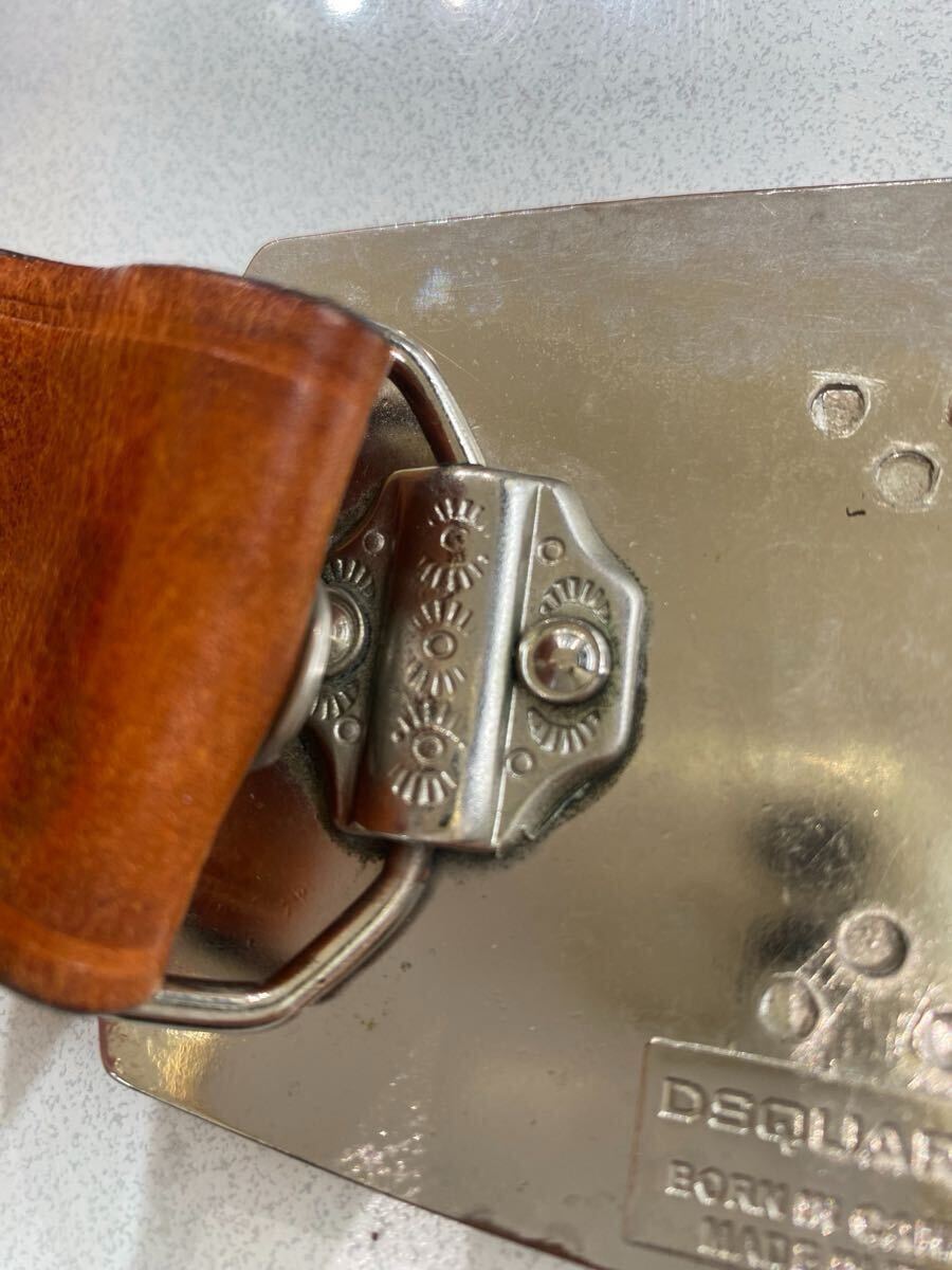 ソ) DSQUARED2 ディースクエアード レザー ベルト ブラウンレザーベルト ファッションベルト ビッグバックル ヴィンテージ オシャレ