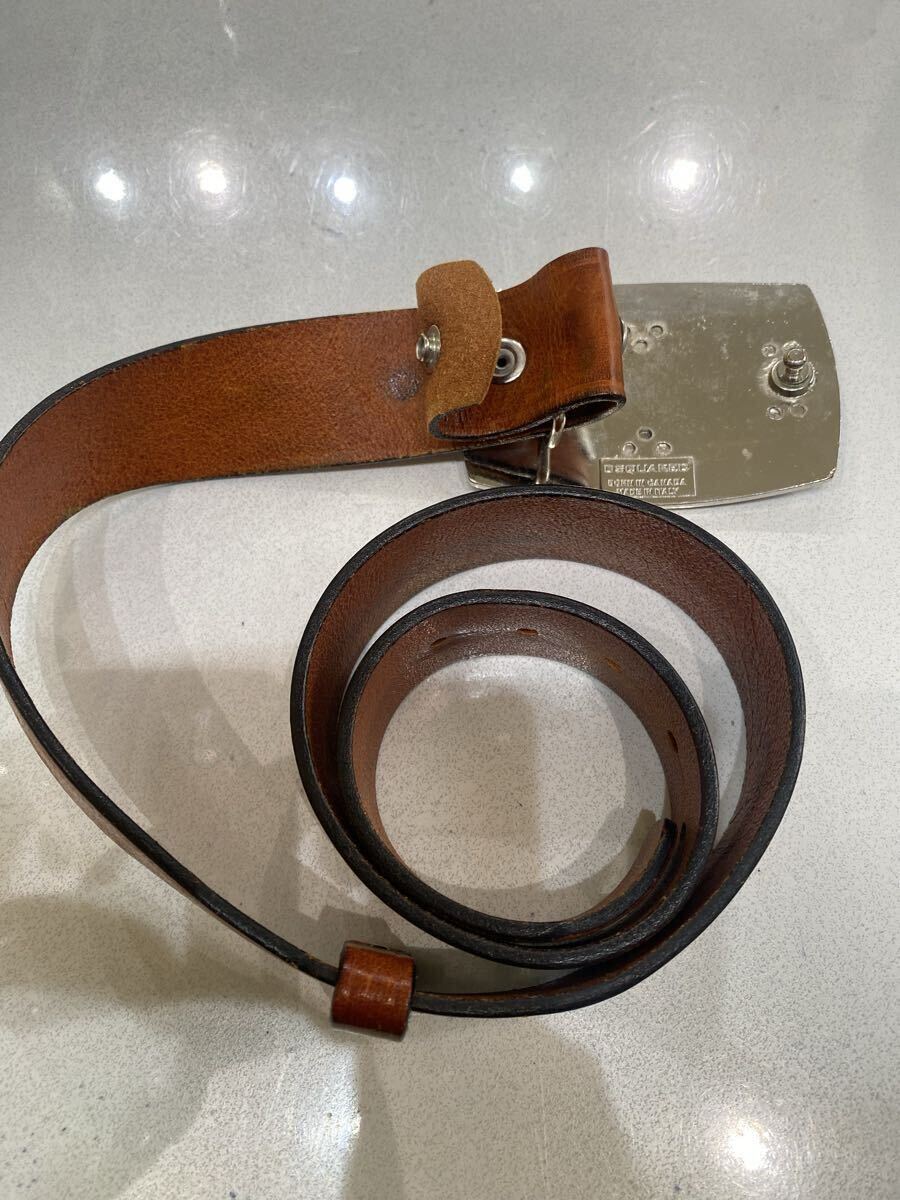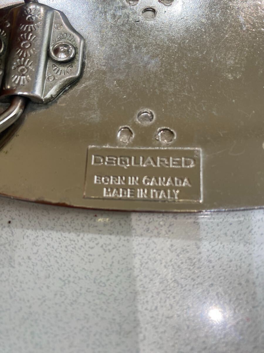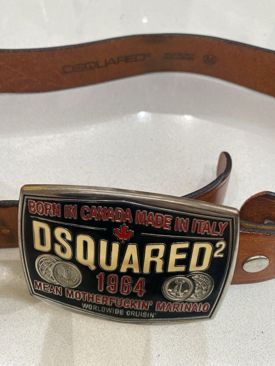 ソ) DSQUARED2 ディースクエアード レザー ベルト ブラウンレザーベルト ファッションベルト ビッグバックル ヴィンテージ オシャレ