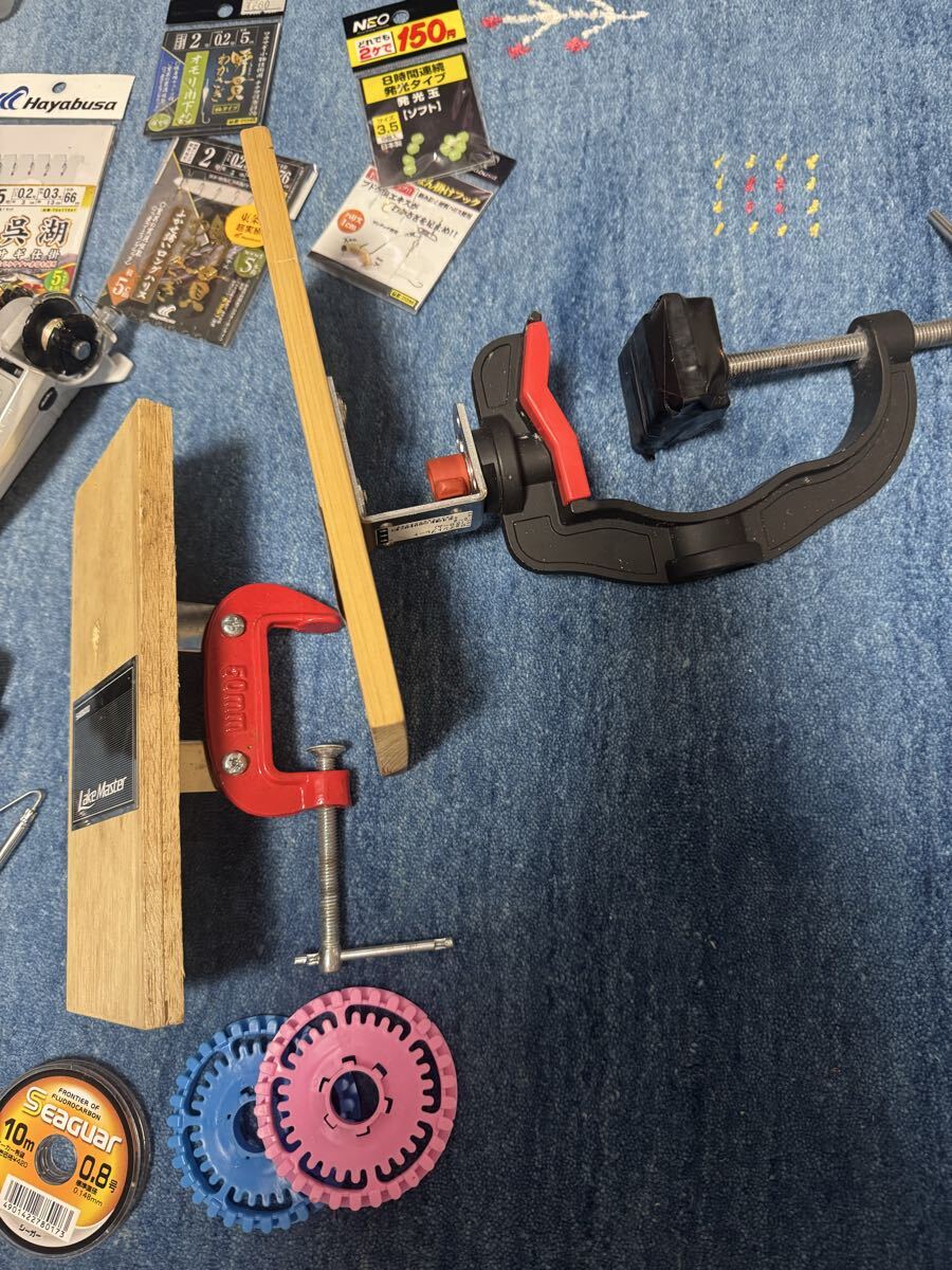 当方2本出しで両手で釣っておりましたので、叩き台も2台あります。全て実釣してましたので、使い勝手は保証します。手作りの電動リールは使い物にはなりますが、オマケ程度とお考えください。