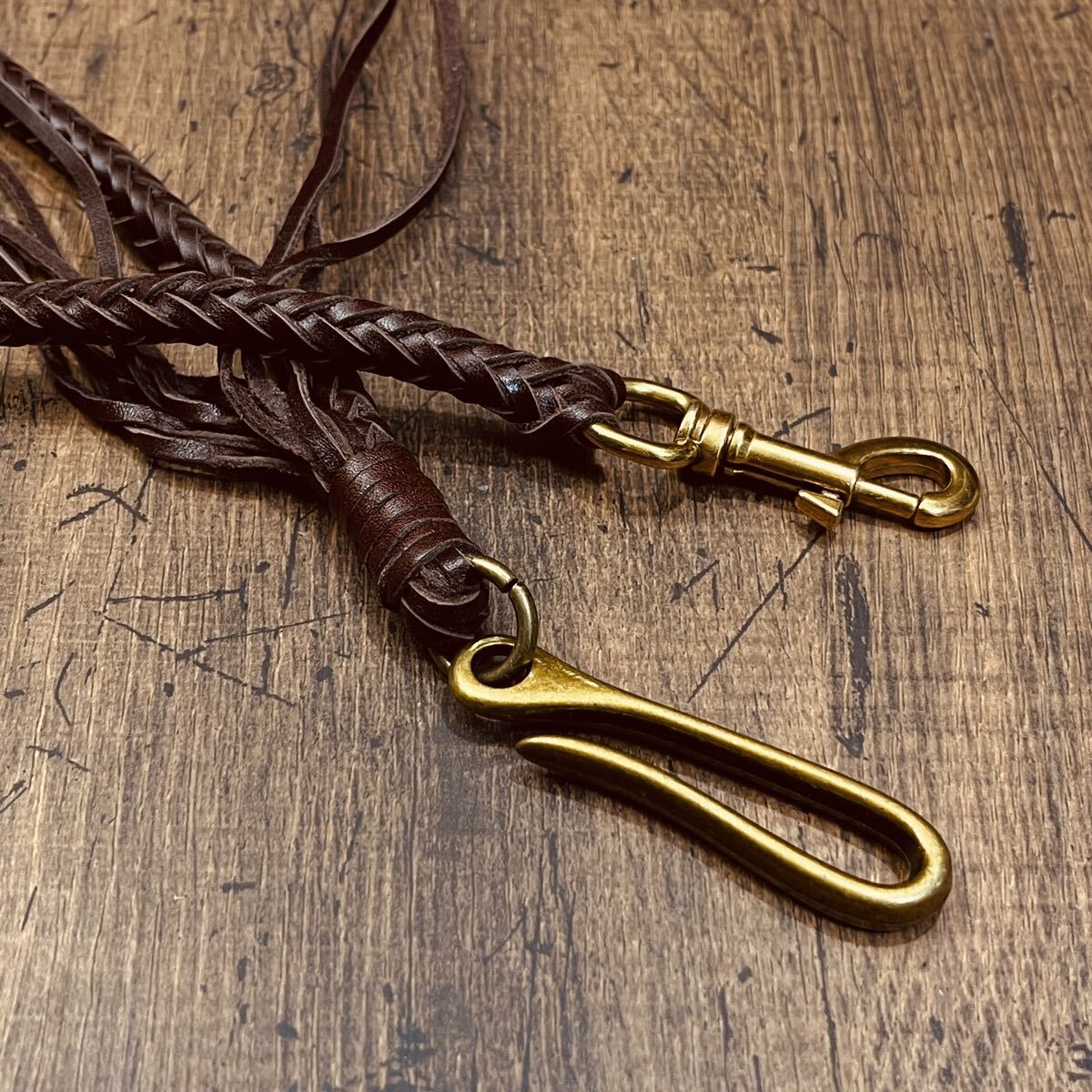 新品 ウォレットチェーン 本革 サドルレザー ウォレットロープ 手編み バイカー レザーウォレットロープ 長財布 メンズ財布 送料無料 3
