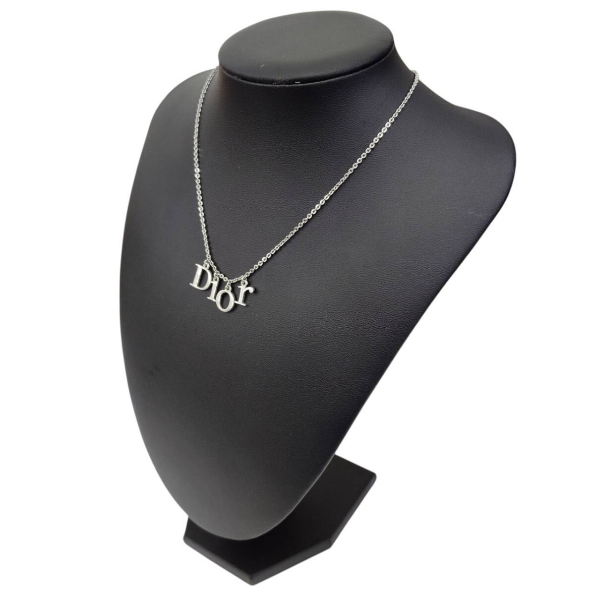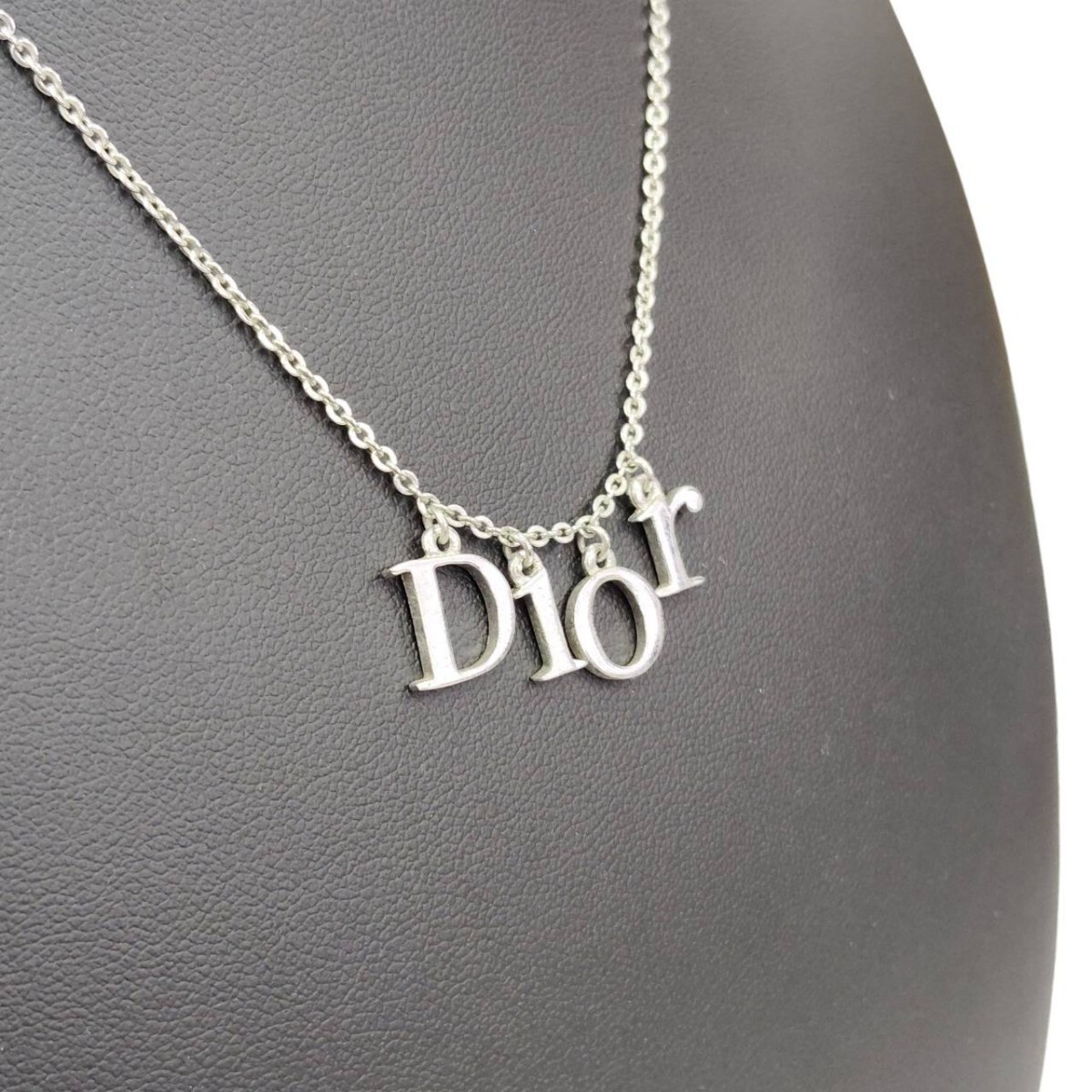 R7-00053 Christian Dior クリスチャンディオール DIORロゴ 揺れるチャーム ネックレス チョーカー シルバーカラー 全長約31-37cm 05