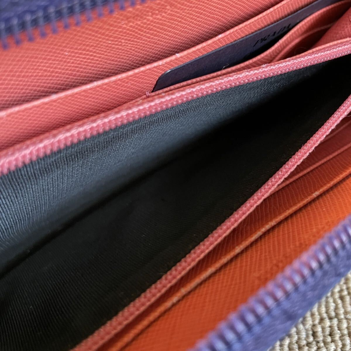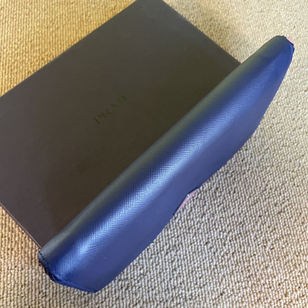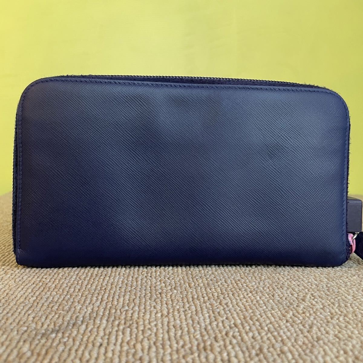 一円 美品 PRADA プラダ サフィアーノレザー ラウンドファスナー 三角ロゴ ビジネス 長財布 ウォレット ネイビー系