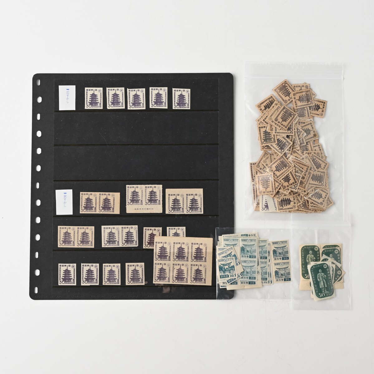 昭和切手 30銭切手 日本古切手 合計391枚 まとめ 法隆寺五重塔 厳島神社 前島密 広透かし 狭透かし バラ ブロック 骨董 古美術 古玩 D