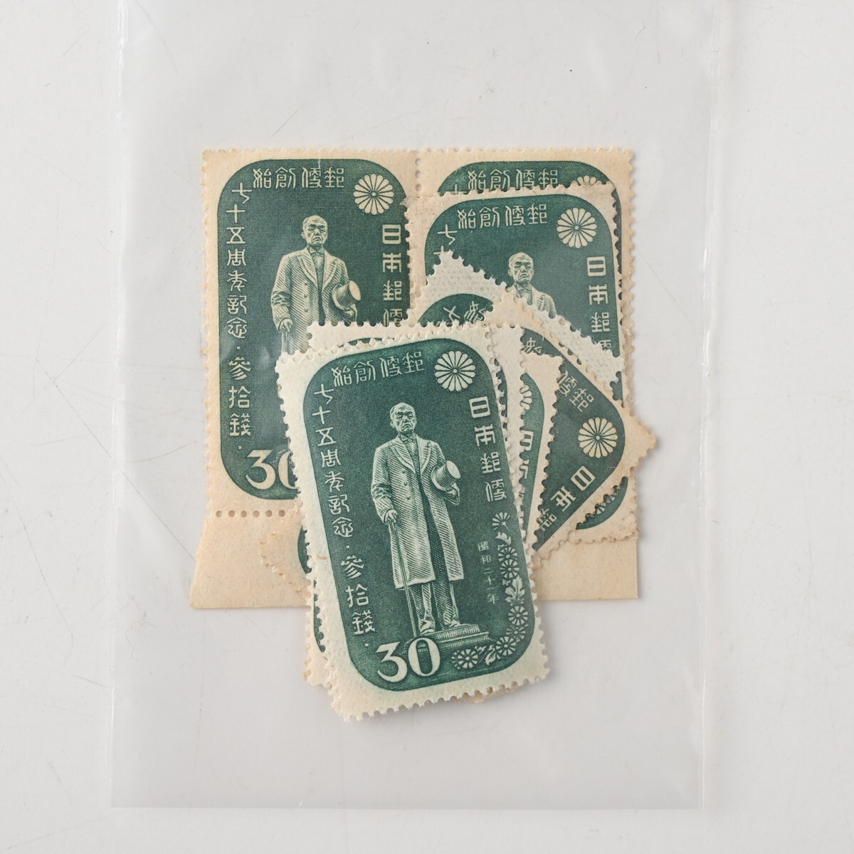 30銭切手:全て消印無し ・法隆寺五重塔:287枚(袋)+27枚(台紙) ・厳島神社:68枚 ・前島密:9枚 合計391枚 額面117円30銭 ※経年品・コレクター収集整理品としての出品です。 お譲り受けしたのち、真贋・分類・評価などは専門家による鑑定を受けておりませんので、切手のリストや見出し等の内容は参考情報としてご覧ください。内容の絶対的な保証はできかねます。 商品の状態(透かし、糊の状態など)については、数が多いため一点一点の確認はしておりません。 写真にて現状をご確認いただき、ご判断をお願いいたします。現状品でのお渡しとなります。 また、当方専門家ではございませんので、専門的なご質問にはお答えできませんこと、何卒ご容赦ください。 状態は写真でご確認ください。 また商品は写真に写っているものが全てです。 ただし、乾電池・電球・比較用の急須や花瓶、家具などを載せている台車、分類用のプラスチックケースなど付属しないものが写っている場合がございます。 付属するか気になるものがあります場合は必ずご入札前にご質問ください。 商品のサイズ・状態説明は原則記載しておりませんので、 写真をよくご覧の上、サイズなど気になる点や不明な点がある場合は入札の前に必ずご質問ください。 特に 機械類・精密機器等は商品説明をよく確認していただき、ご質問・ご入札をお願いいたします。 ※専門外の商品もございますので、お答えできる範囲には限りがあります。