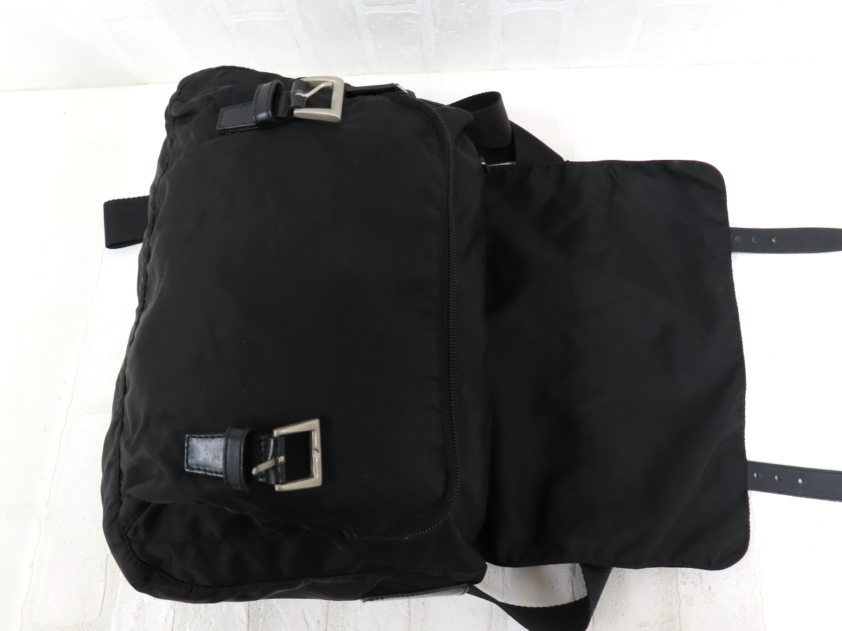 ◆美品◆PRADA プラダ◆ナイロン カーフ レザー 本革◆ショルダー バッグ◆ブラック シルバー金具◆イタリア製◆フラップ◆A14525