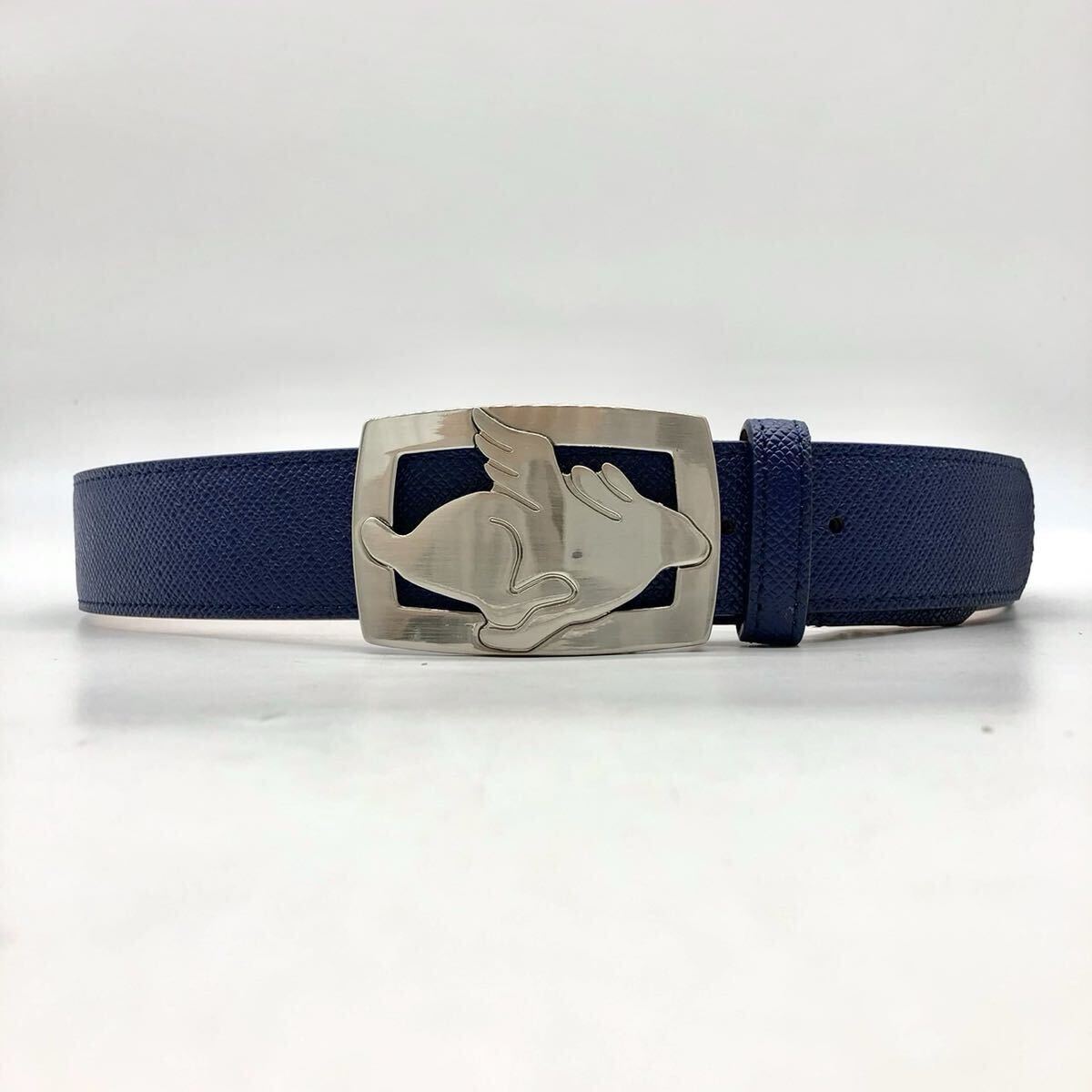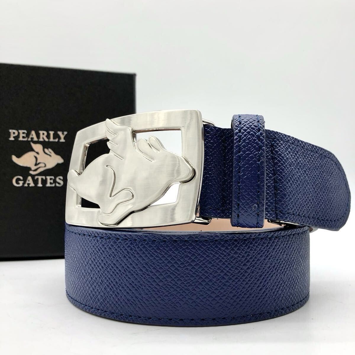 【極美品 箱付き】PEARLY GATES ベルト フライングラビット ロゴ レザー 日本製 本革 パーリーゲイツ メンズ ゴルフ ネイビー ユニセックス