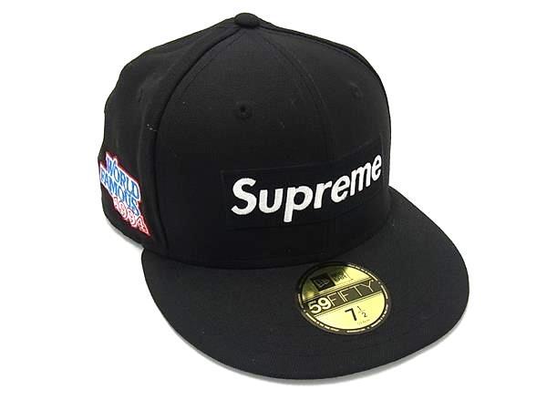 1円 ■美品■ Supreme シュプリーム ニューエラコラボ ボックスロゴ ウール ベースボールキャップ 帽子 サイズ 7 1/2 ブラック系 FU5401