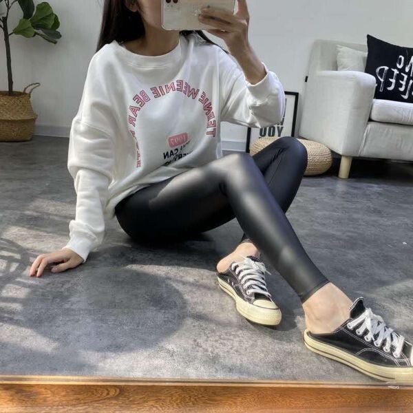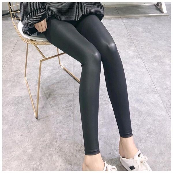 光沢無し フェイクレザー レギンス