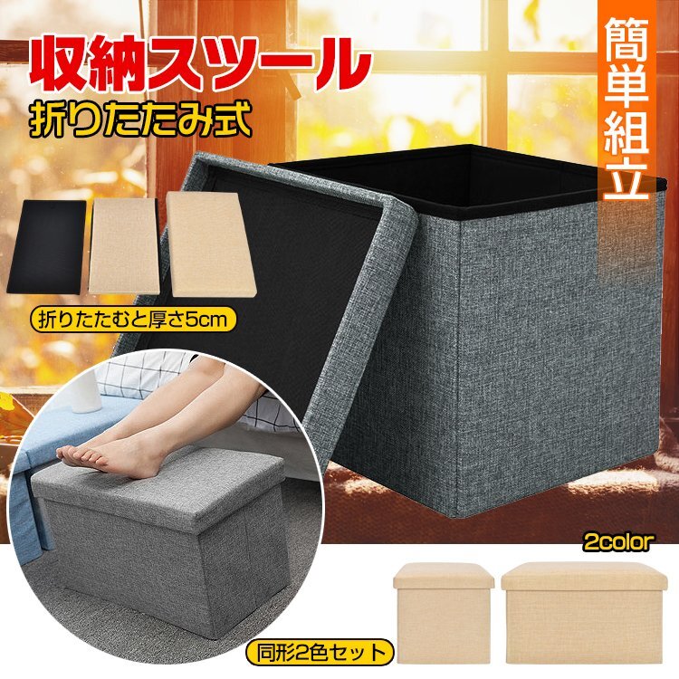 1円 収納スツール オットマン 2個セット 収納ボックスふた付き 折りたたみ式 ストレージチェア 足置き 踏み台 大容量収納 衣類収納 ny105