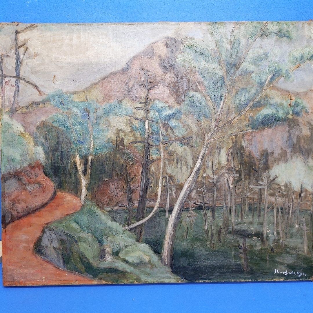 龍駿介油彩画12号『大正池』昭和10年代始め 榎本敏晃コレクション 富士山ばかりではないセザンヌ張りの初期の力作です!《真作》