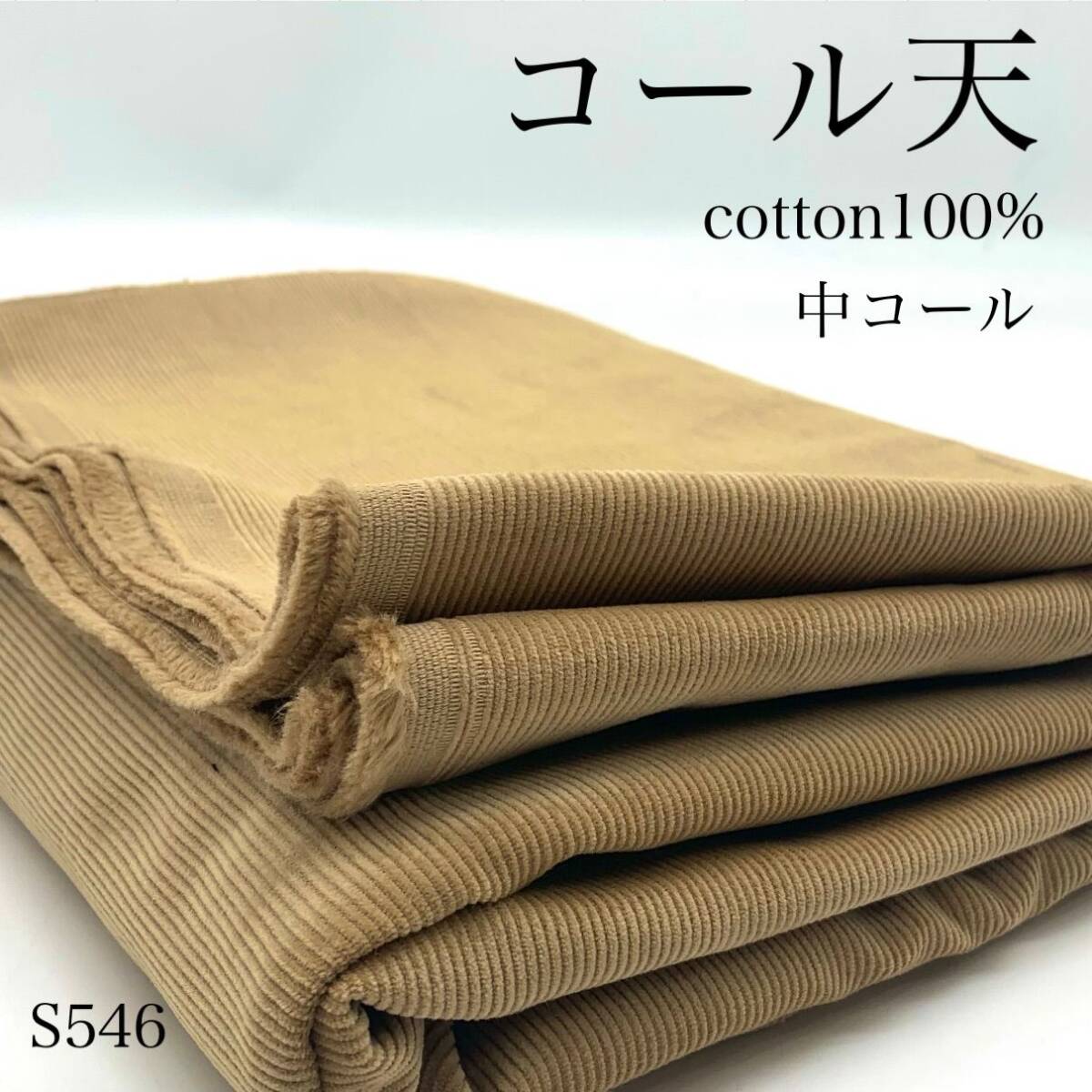 S546 コール天 2m 綿100% 中コール ベージュ系 無地 生地 コーデュロイ 13ウェル 日本製 国産 カサデパーノ 生地の家