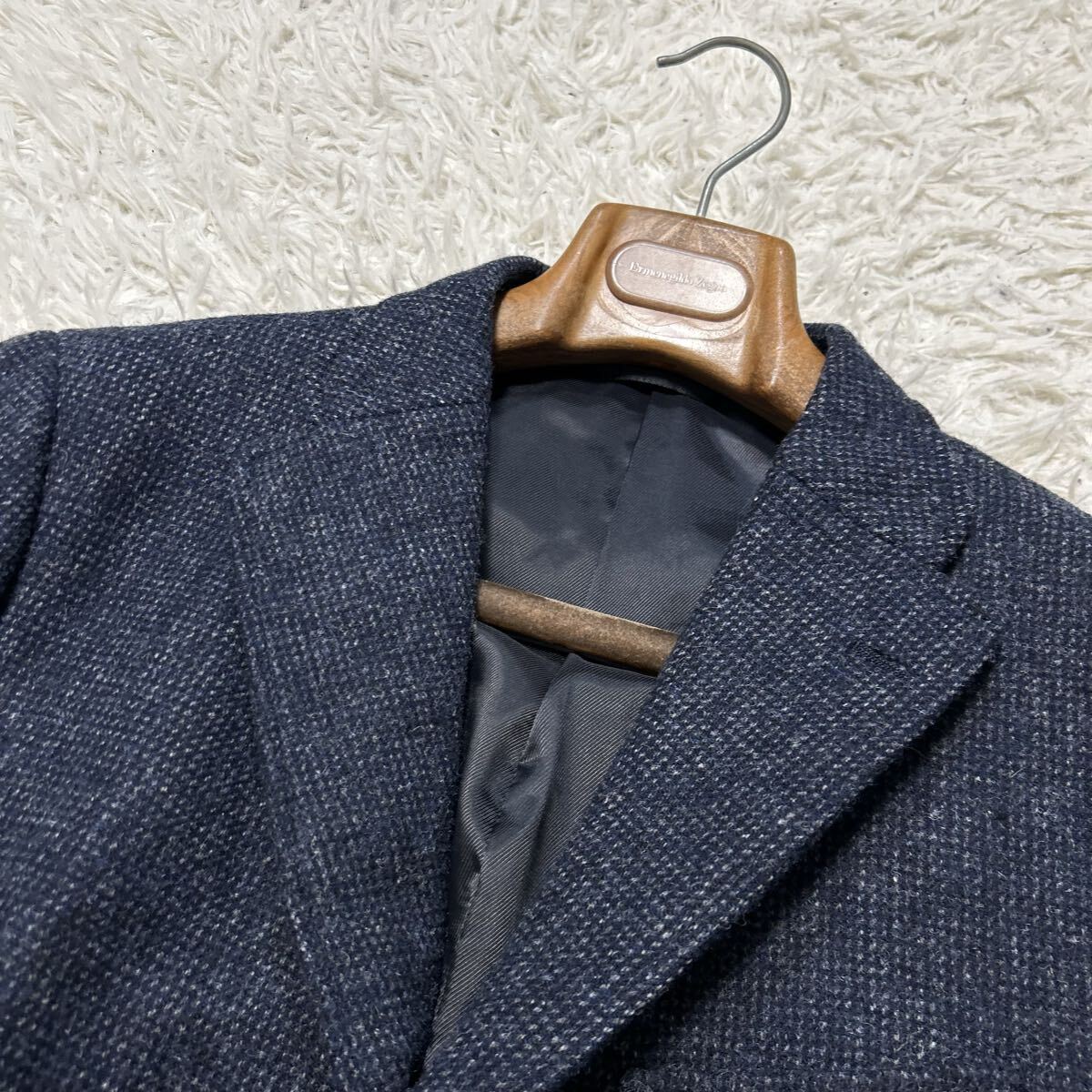 シンプリシテェ ムーン【至高の逸品】simplicite MOON チェスターコート ロングコート ツイード ネイビー L位