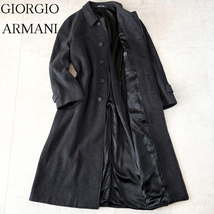 1円スタート■希少XXL■極美品■GIORGIO ARMANI ジョルジオアルマーニ ステンカラーコート ロング コート ヘリンボーン 52 着丈127cm