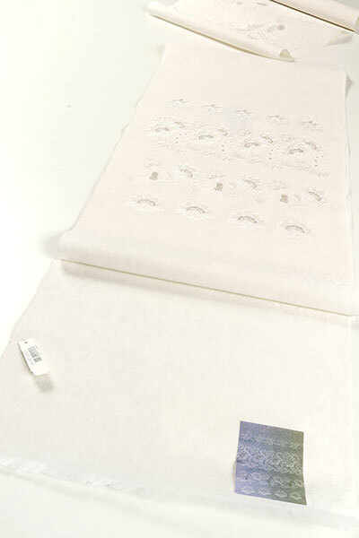 和遊館 即決ona4489 西陣 大光 地紋 刺繍 九寸 名古屋帯 オールシーズン オフホワイト お仕立て付き