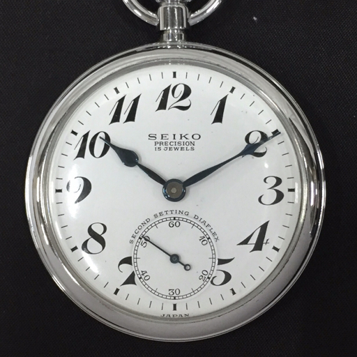 | セイコー プレシジョン 手巻き 機械式 懐中時計 スモセコ スモールセコンド ホワイト文字盤 稼働品 SEIKO A22113 |