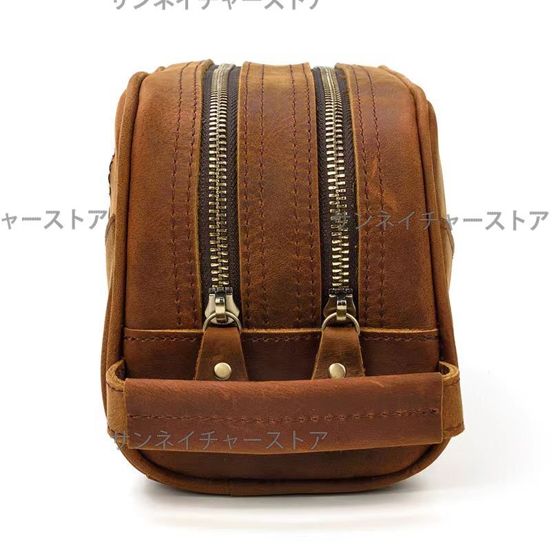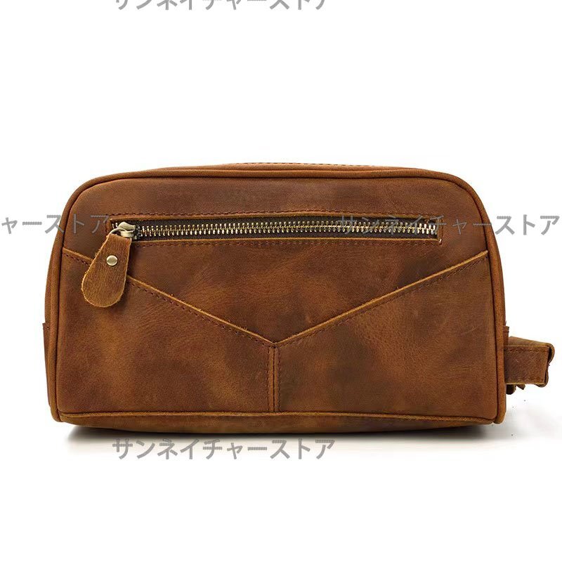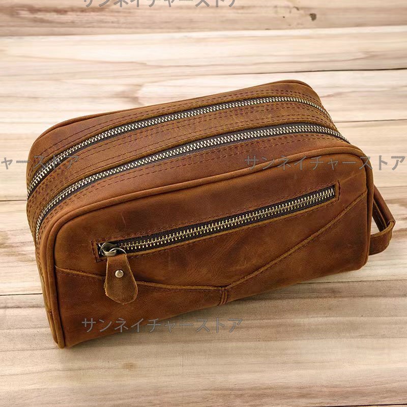 収納ポーチ 本革 メンズ レザー 大容量 セカンドバッグ 2室 ハンドバッグ 化粧バッグ iPad mini対応 収納鞄 トイレタリーポーチ