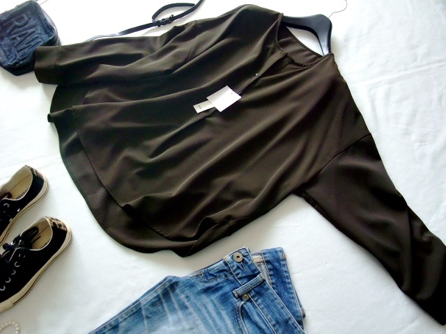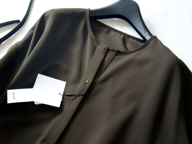 訳あり★大人素敵トレンド人気★ストレッチとろみ感ノーカラー後ろ切り替えブラウス★3Lこげ茶ワイドビックドロップショルダー大きなサイズ★