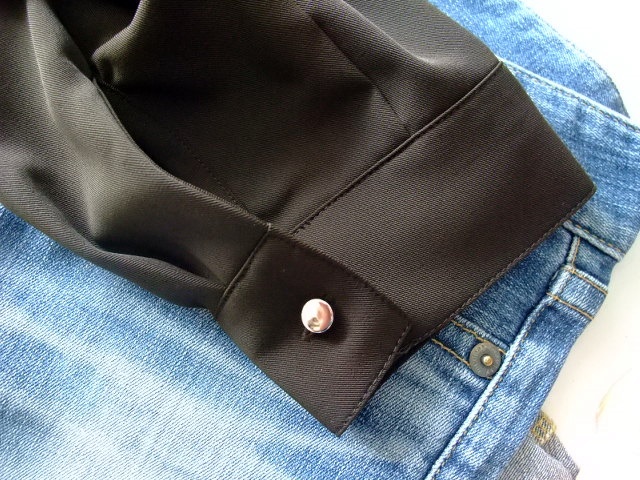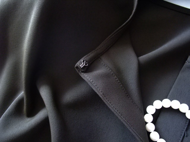 ネック上部は鍵ホックになっていて、前下がりのサイドの切り替えデザインが