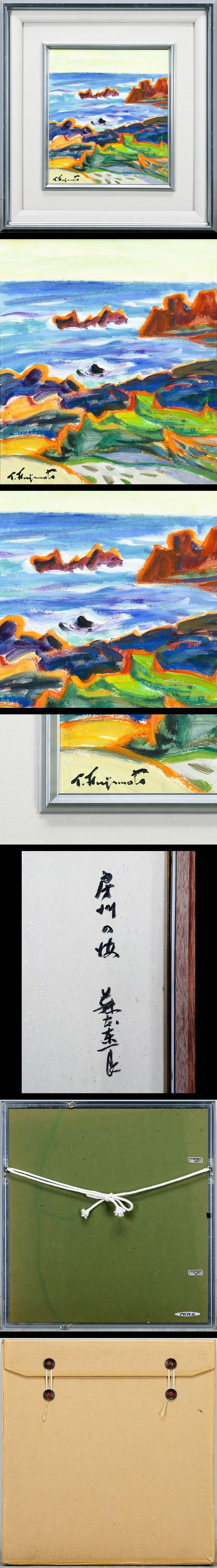 【真作】【WISH】藤本東一良「房州の海」紙に油彩 鮮烈なブルー・オレンジ・グリーンの色彩 〇日本芸術院会員 日展顧問 #25112265