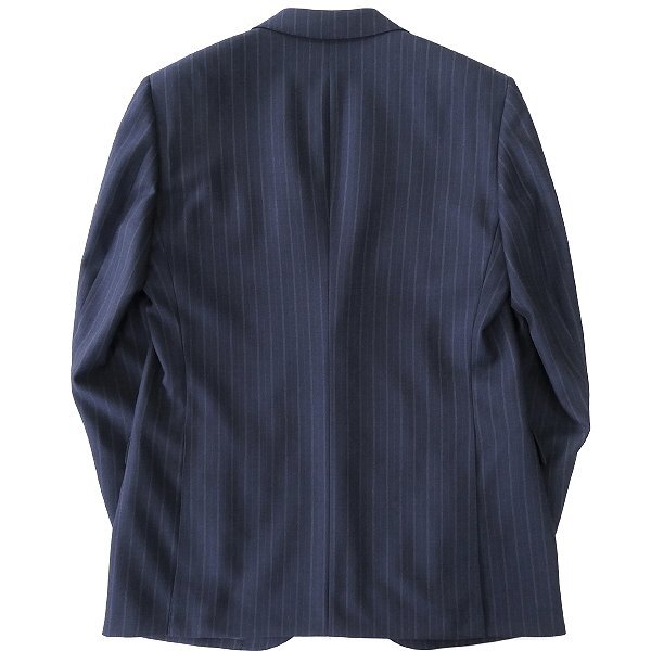 AB5サイズ(やや幅広体型のMサイズ相当) 胸囲96 胴囲86 身長170 ※写真は別サイズを使用している場合がございます※ ※商品に記載されたサイズ・寸法です※ 【ジャケット】 肩幅46cm 身幅54cm 袖丈59.5cm 着丈72.5cm 【スラックス】 ウエスト87cm(内回り1周) 股上28cm 股下87cm 裾幅22cm 腿幅31cm(股下10cm部分) 表地:毛50% ポリエステル50% 裏地 胴裏:キュプラ55% ポリエステル45% 袖裏上部(ストレッチ部分):ポリエステル65% 複合繊維(ポリエステル)35% 袖裏下部:キュプラ100% 下衣:ポリエステル100% ネイビー |