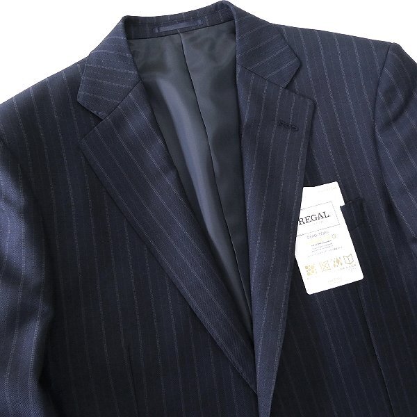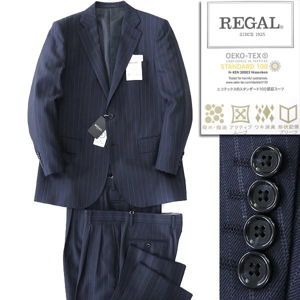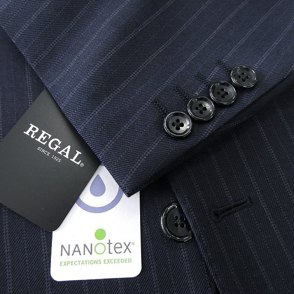 新品 リーガル NANOtex 撥水 撥油 ストライプ 2パンツ スーツ AB5(やや幅広M) 紺 【J58250】 REGAL 秋冬 メンズ セットアップ ウール