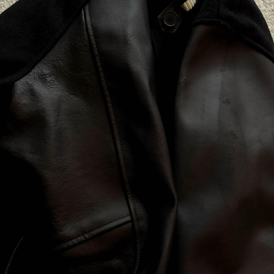 ★希少 XLサイズ★ BEAMS HEART スタジャン 袖レザー リブニット ビームスハート ドンキー ジャケット ダブルジップ 黒 ブラック LL メンズ