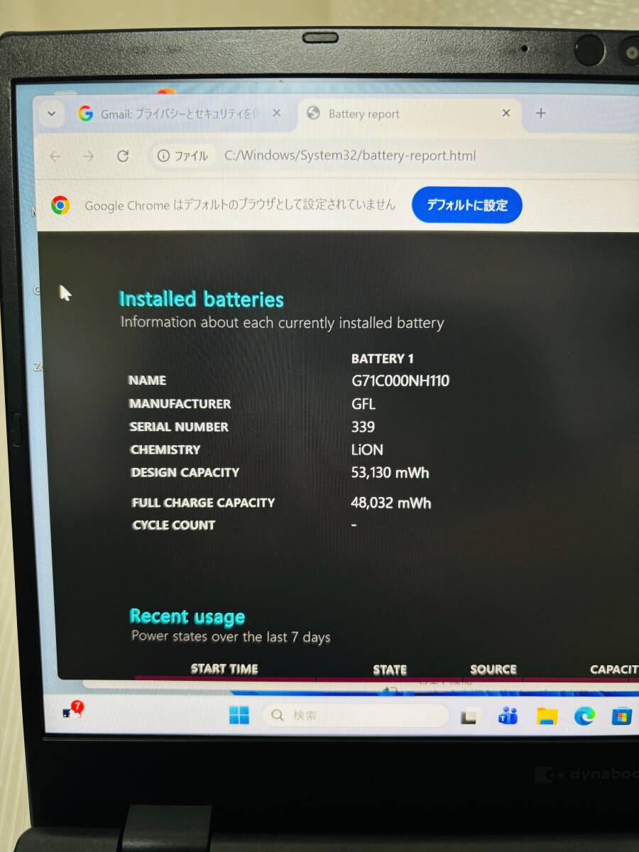 充電100%で使用可能時間についてご質問頂きましたのでお調べしました。 OSによる残り時間の表記は11時間から15時間の間を行ったり来たりします。 OSによる表示のためか数字が安定しませんが画像10にあるようにバッテリーの残容量は大体90%ほどです。 元々のスペックデータを見ると14時間稼働と書いてありましたので単純計算で12.6時間となります。 もちろん使用状況によって変わってくると思いますので目安にしかなりませんが大体10時間程度は期待できるものと思われます。