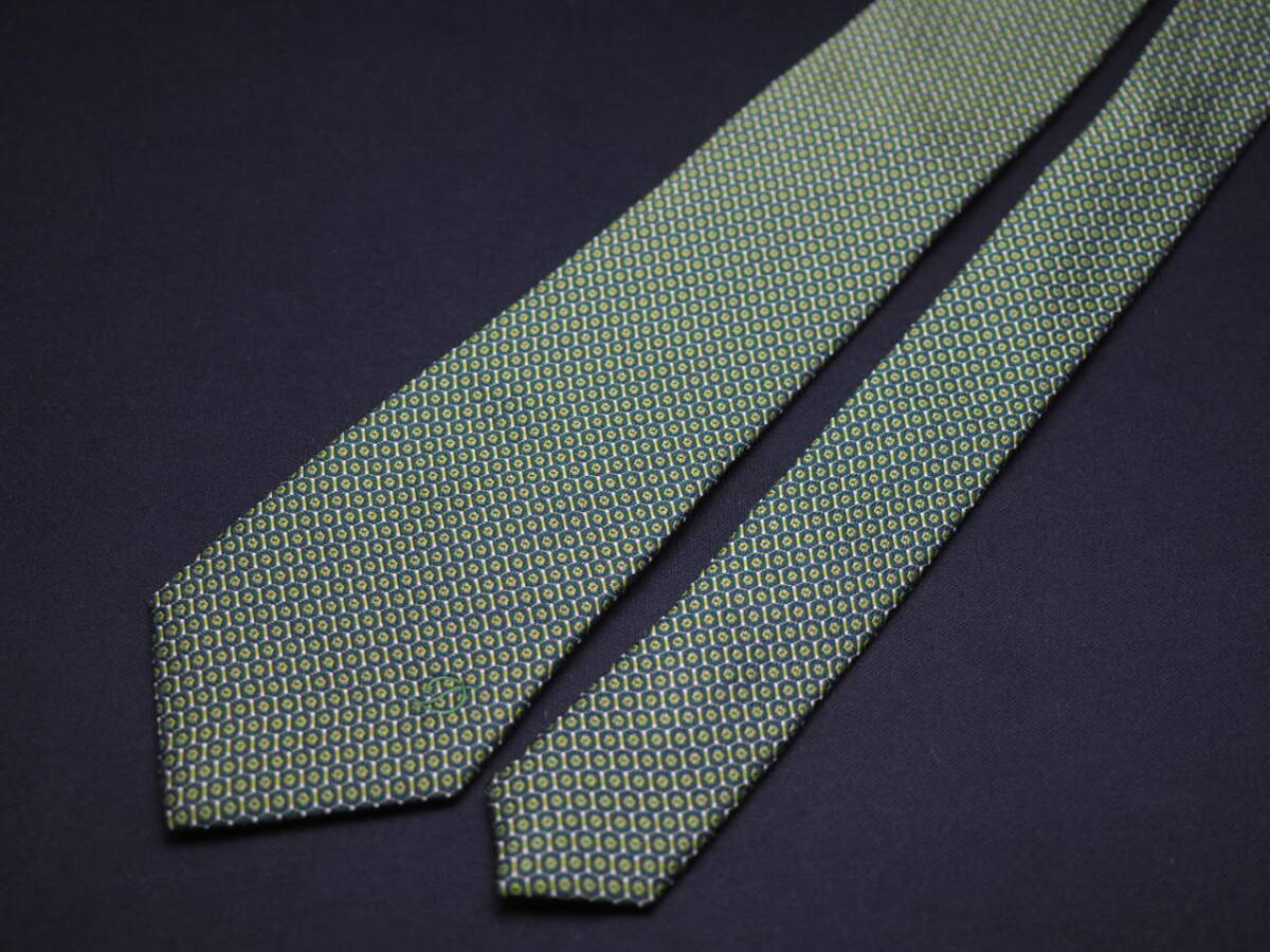 美品【S.T.Dupont デュポン】 F1202 グリーン系 SILK ブランド ネクタイ 古着 良品