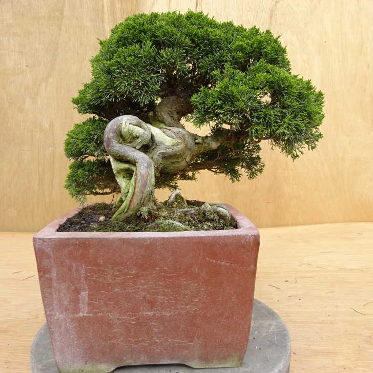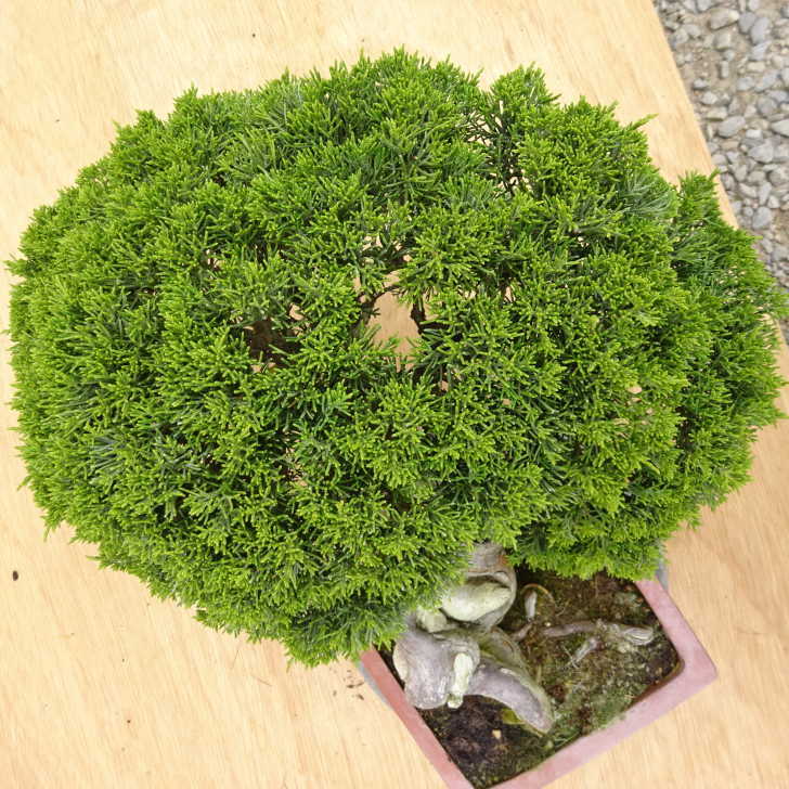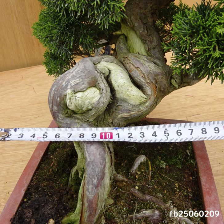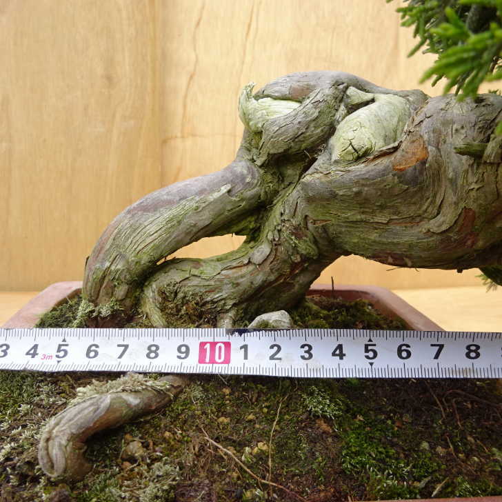 ■植物ですので撮影時期や季節によって剪定などの手入れにより写真から変化がございます。撮影日をご確認のうえ、ご注文ください。 ■年に一度、冬頃にジン・シャリのお手入れをおこなっています。薬品の関係で黄色く変色しているようにみえる場合がありますが徐々に薄れていくので問題はありません。 【真柏盆栽】 シンパクの1番の特徴と言えば、短く締った紐状の葉と、わずかな水吸いでも生き抜くことができる強靱な幹枝です。自然界では積雪や強風などで押しつぶされ木部が露出し、朽ちて白骨化したものが見られます。枝の一部が白骨化したものを神(ジン)、幹の場合は舎利(シャリ)といいます。 |