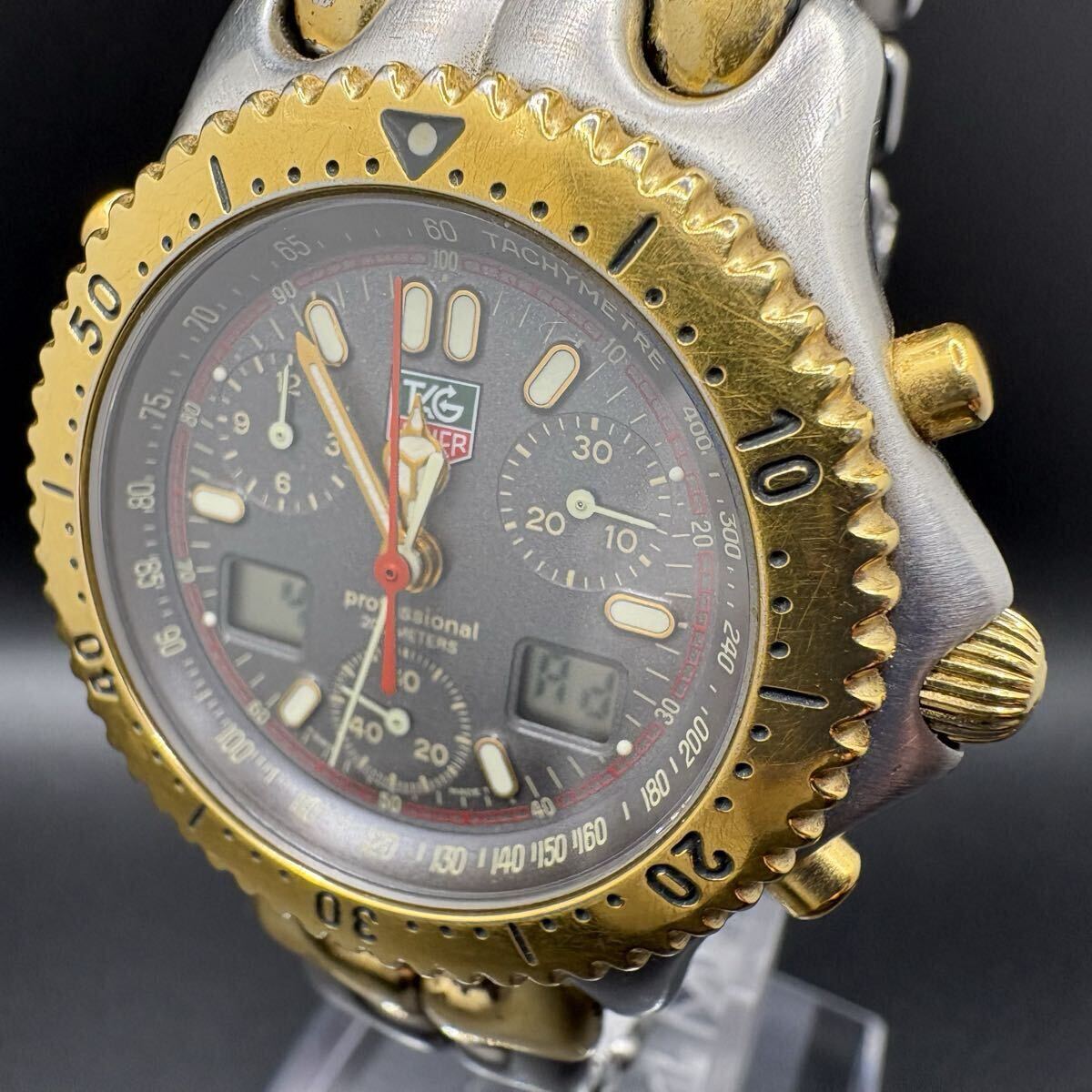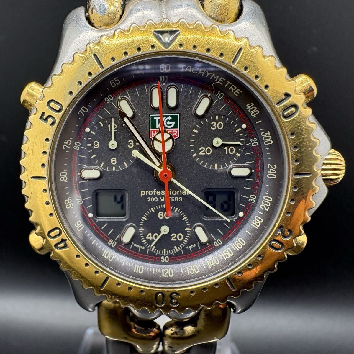 1円【稼働】TAG HEUER タグホイヤー S/el セル CG1122-0 Ana-Digi Chronograph クロノグラフ コンビ 純正ブレス 200m TwoTone Men’s Watch