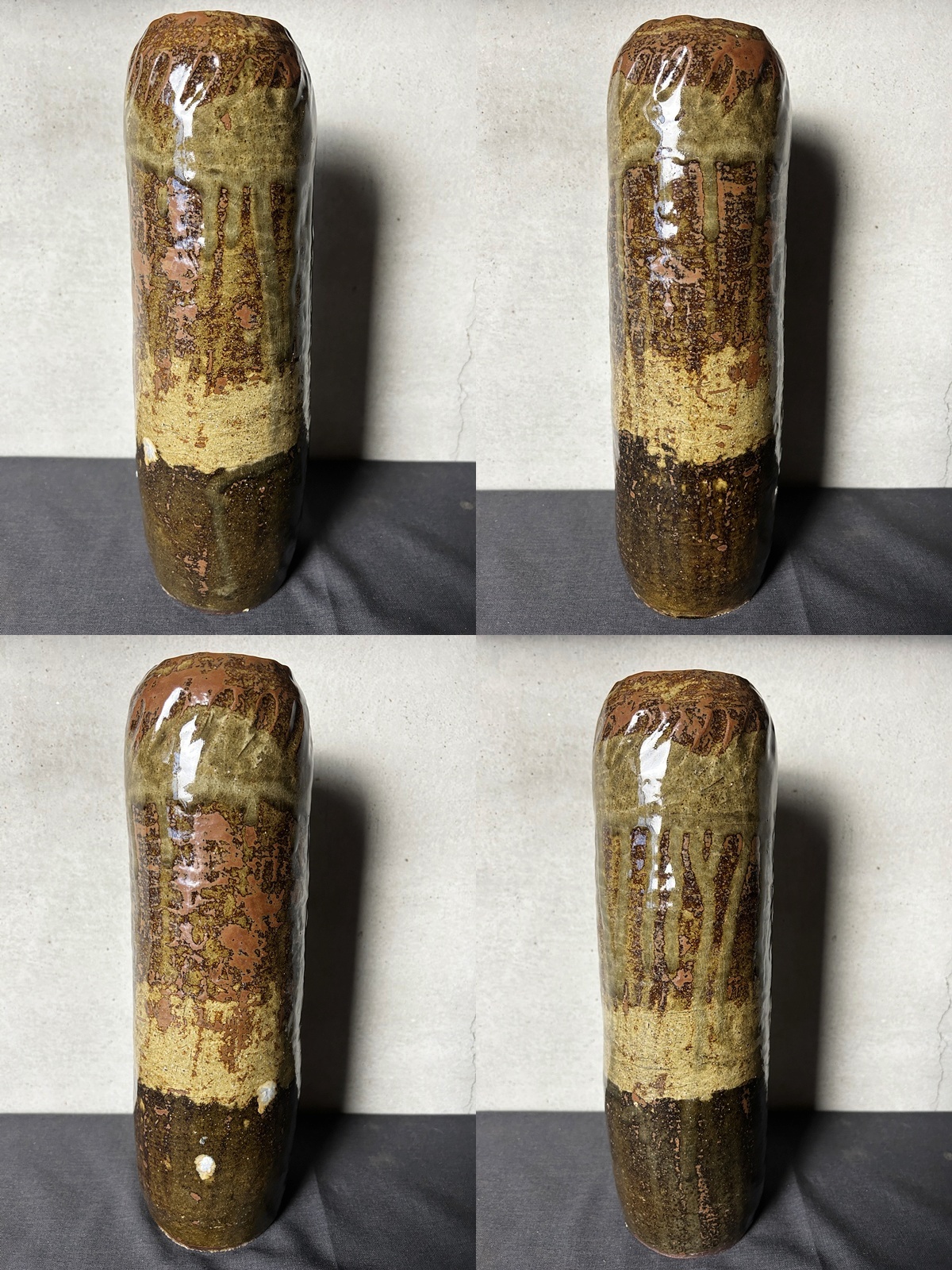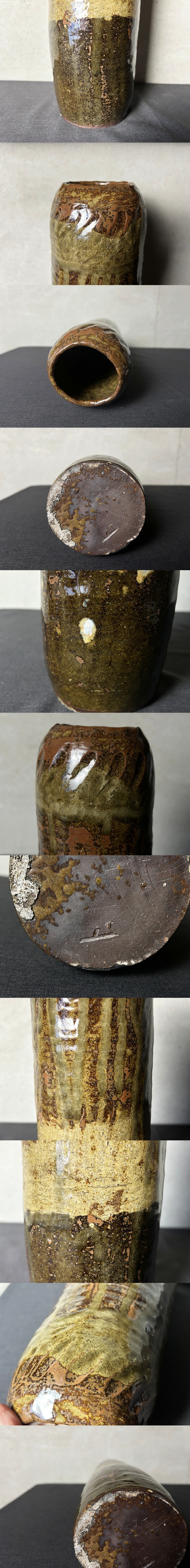 民藝 在印 花瓶 花器 高さ34.5cm◇直径10cm/花生/フラワーベース/飾壷/壺/置物/飾り物/オブジェ/華道具/インテリア/在銘/垂釉/窯変