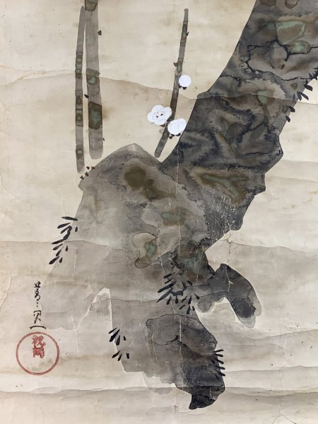 YN134 模写 鈴木其一「古梅之図」掛け軸 紙本 合箱 酒井抱一門下 琳派 江戸時代後期 東京の人 人が書いたもの 軸先欠 箱破損有
