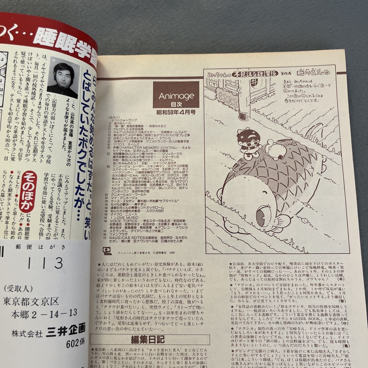アニメージュ●昭和59年4月号●VOL.70●Animage●アニメ●映画●風の谷のナウシカ●スタジオジブリ●宮崎駿●高畑勲●シール付き