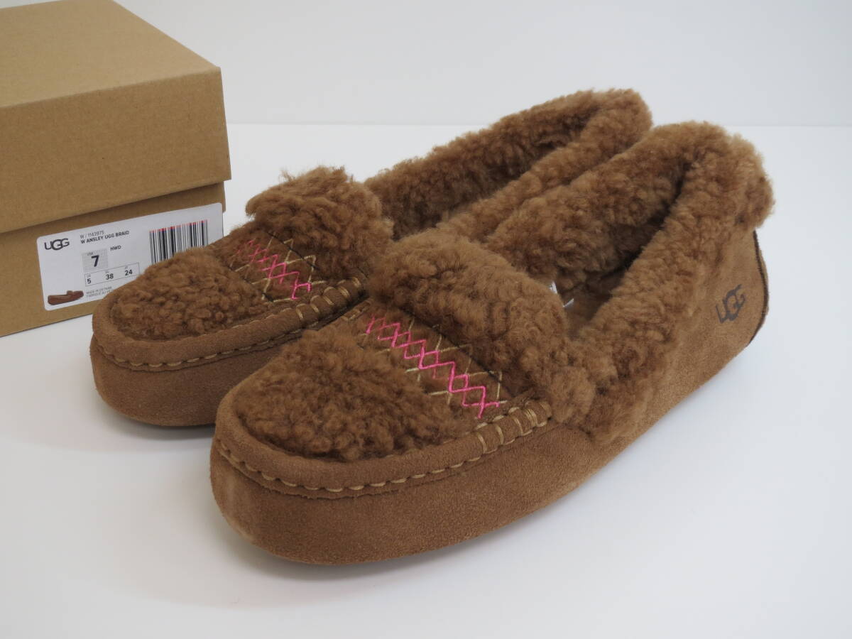 (f-3) UGG アグ モカシン / ローファー / スリッポン ボア ブラウン 24.0cm レディース シューズ・靴