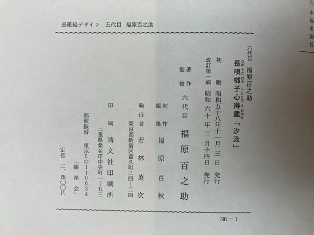 長唄囃子心得鑑「汐汲」 六代目福原百之助 昭和60年改訂版 篠笛会 CGE1480