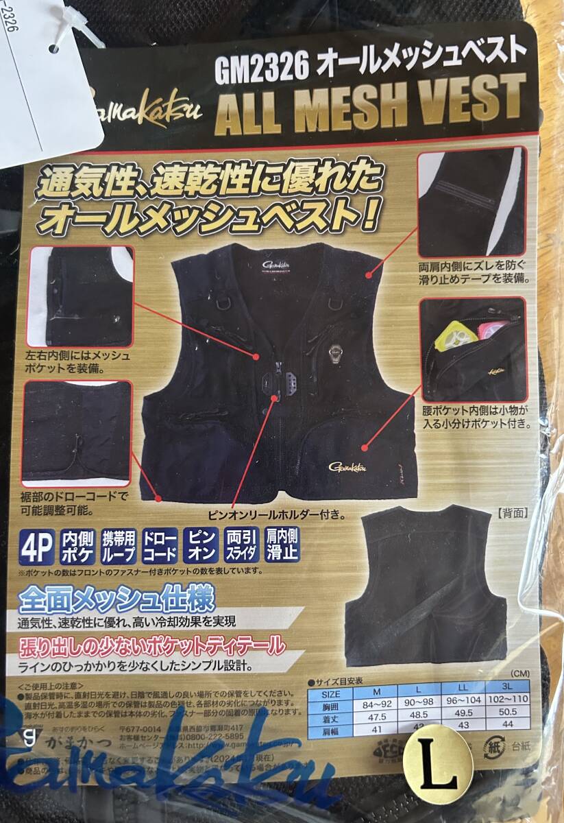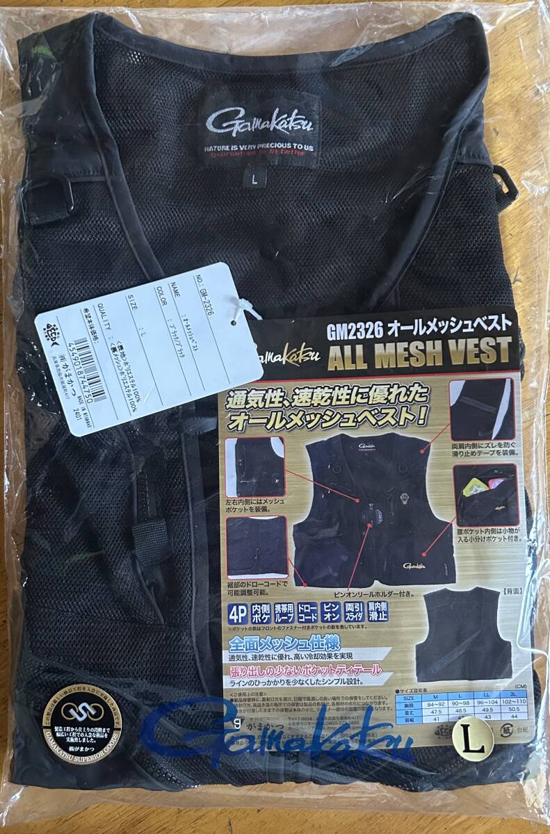 ★新品・未使用・即決 GAMAKATSUがまかつ 鮎・渓流・ヘラ・磯オールメッシュベストGM2326 ブラック×ブラック サイズLL