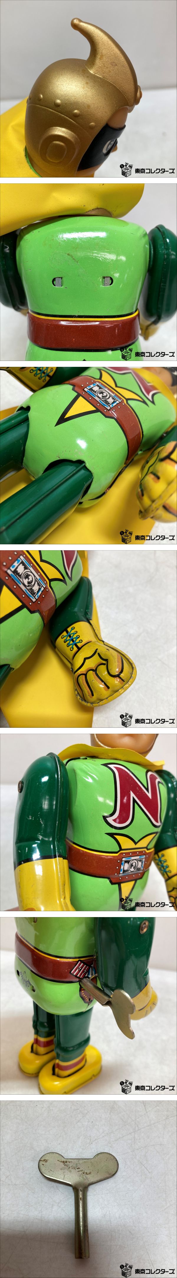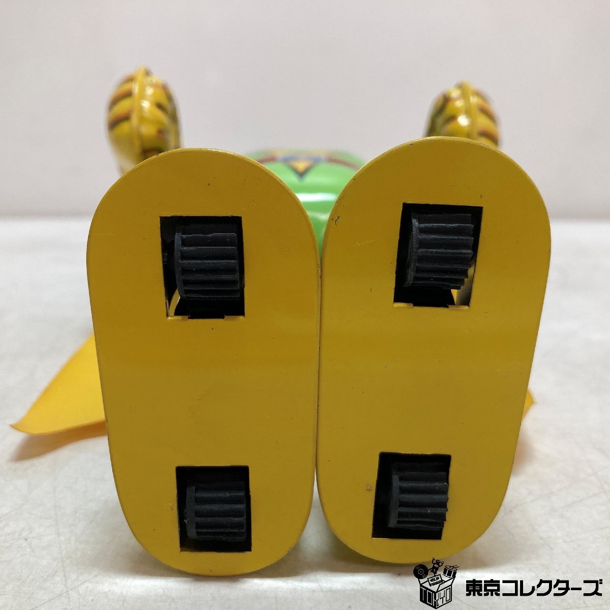 ・ゼンマイを巻くと、手足を動かしながらゆっくりと前進します。頭部は360℃回転する状態です。