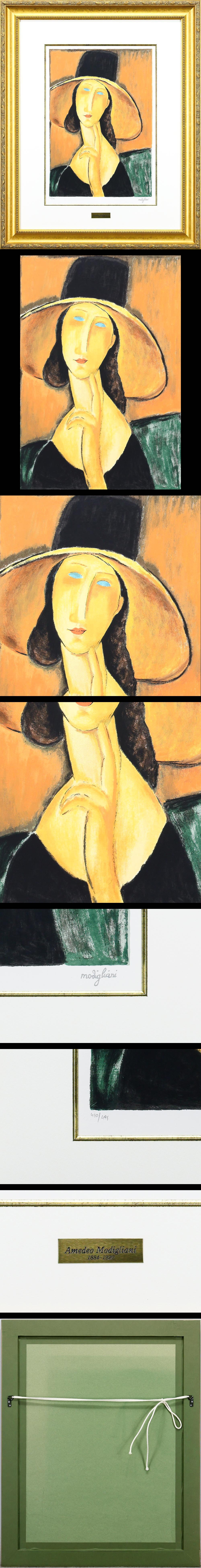 【真作】【WISH】アメデオ・モディリアーニ Amedeo Modigliani「大きな帽子のジャンヌ・エビュテルヌ」リトグラフ 6号大 #25112306