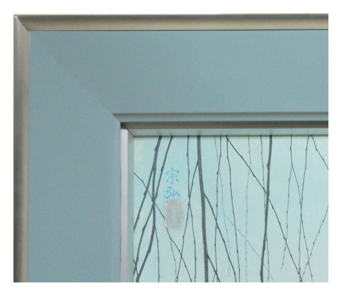 作品左上にサイン・落款 マット中央下にタイトル・作家名・制作年プレート 共シール |