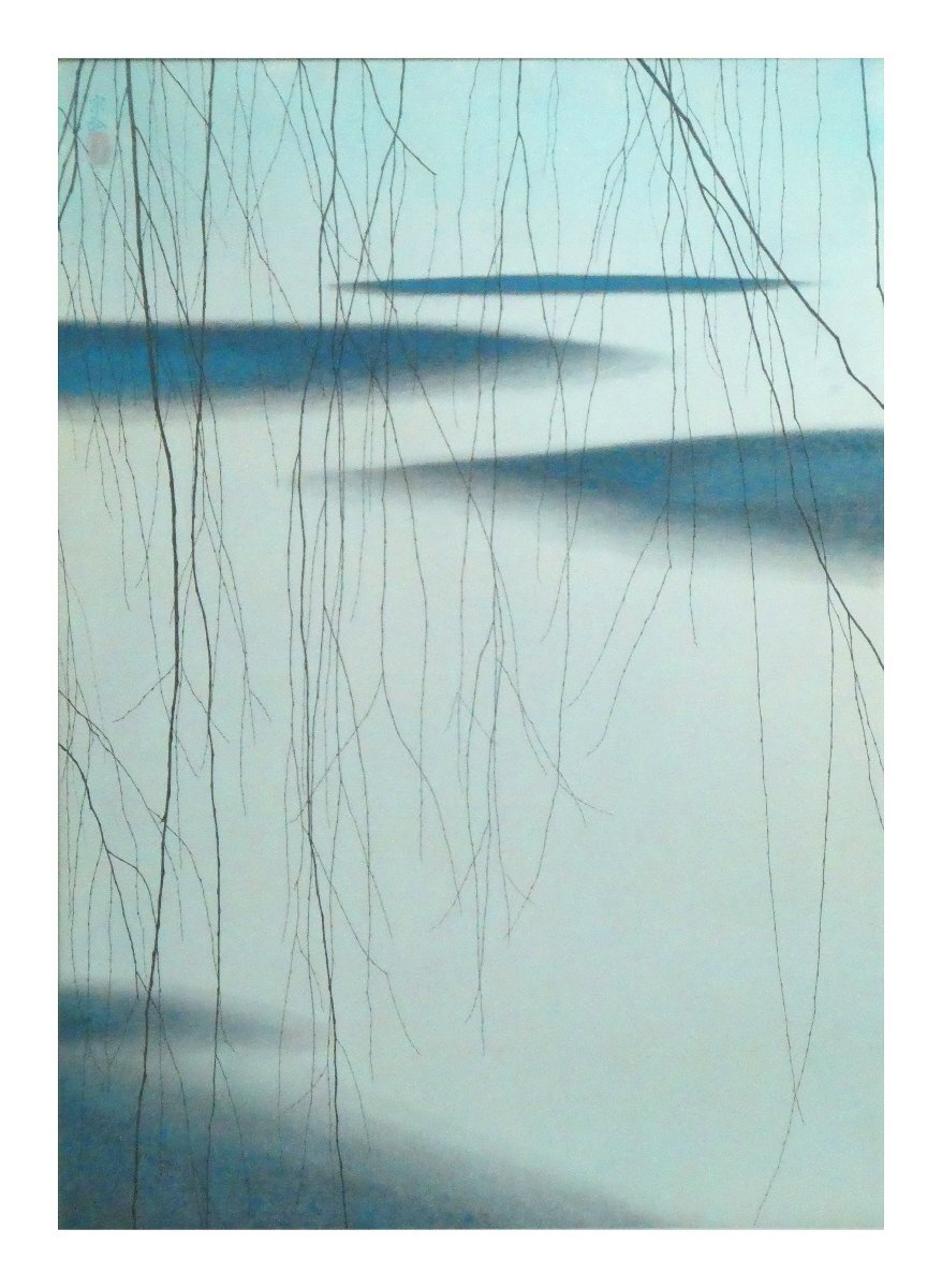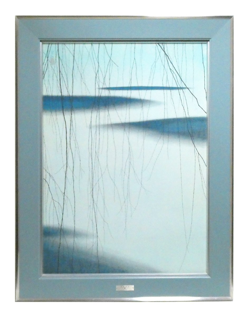 日本の自然や四季の美を詩的に伝える画家として人気が高い、中村宗弘画伯。非常に叙情的で、自然の静けさや移ろいをやさしい色使いで表現する作家です。 「霤」は「雨垂れ」を意味します。直接雨垂れは描かれていないながらも、雨の気配を感じる作品です。30号の迫力ある自然をぜひお手元でお楽しみください。 |