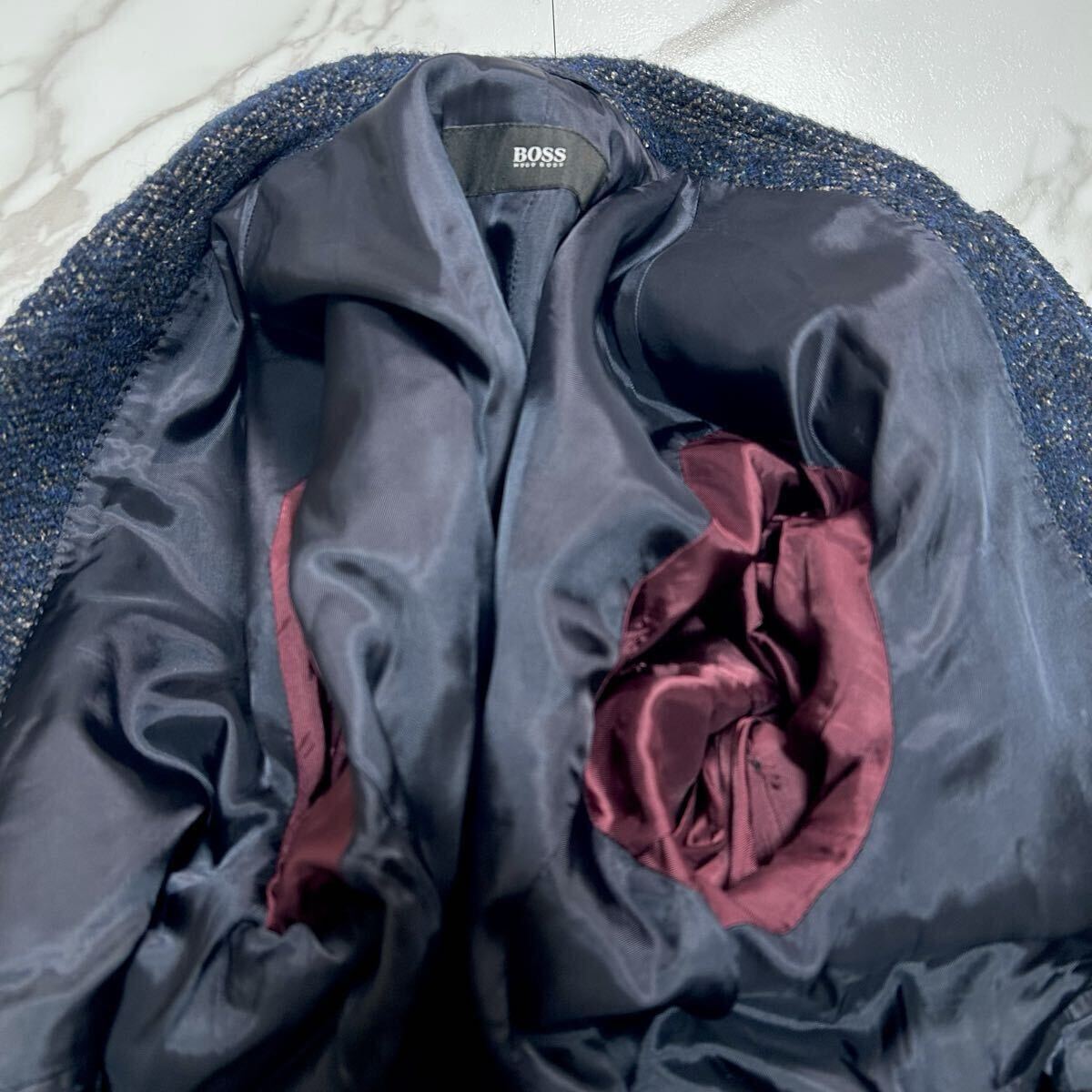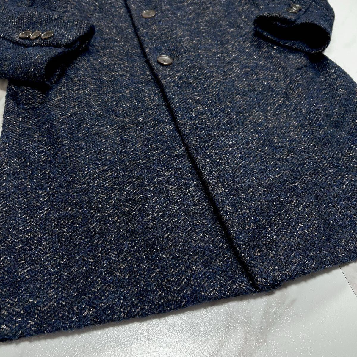 超弩級XXL〜XL/高級感●HUGO BOSS ヒューゴボス ロング コート ジャケット チェスターコート ツイード メランジ ウール メンズ 52