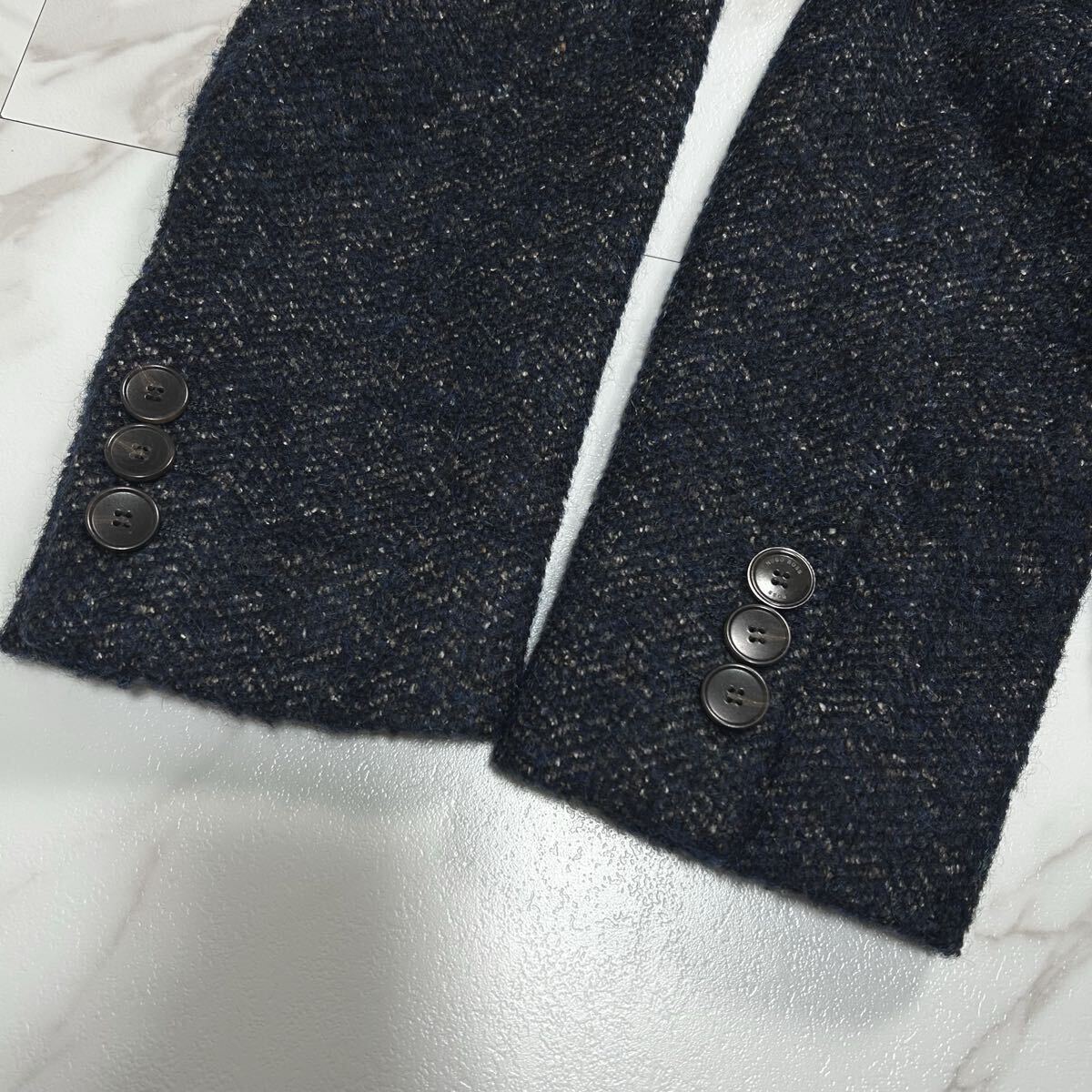 ※ケアタグにベタつきがございますが裏地内ポケットの中となりますので着用・使用自体に差し支えはございません。裏地にケアタグの色移りが少々ございますが着用時見えない箇所となりますので安心してご着用頂けます。お写真の(9枚目)ご確認をよろしくお願いいたします。
